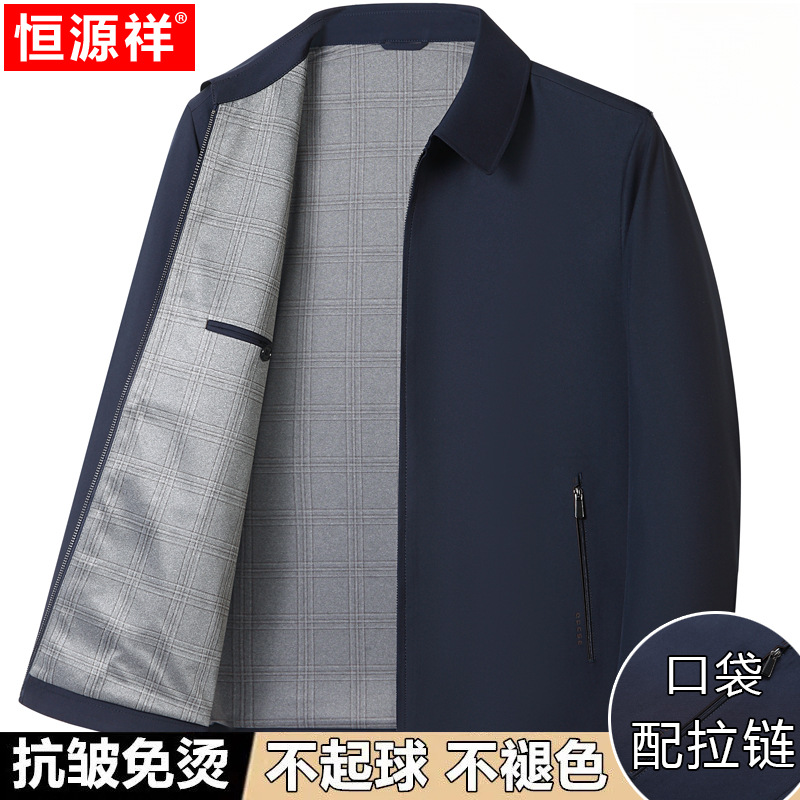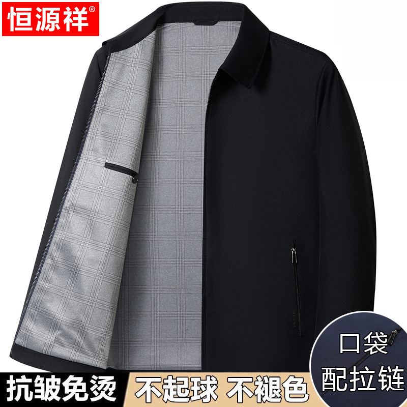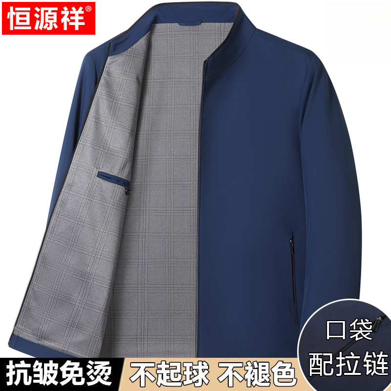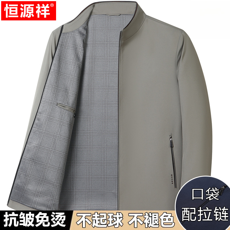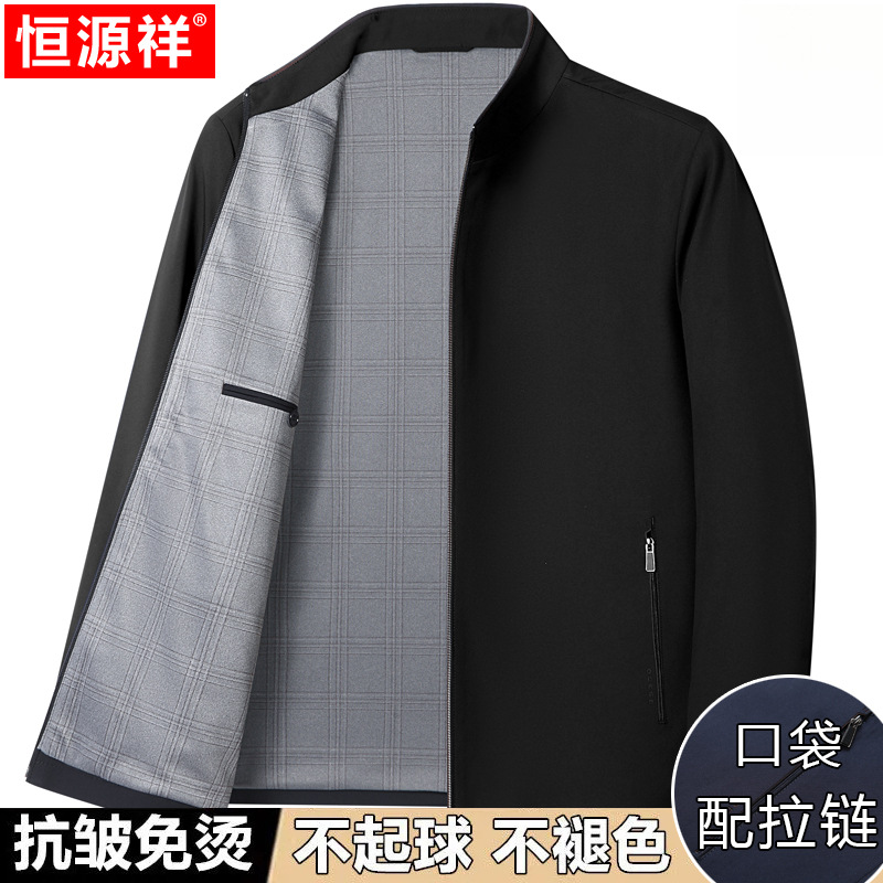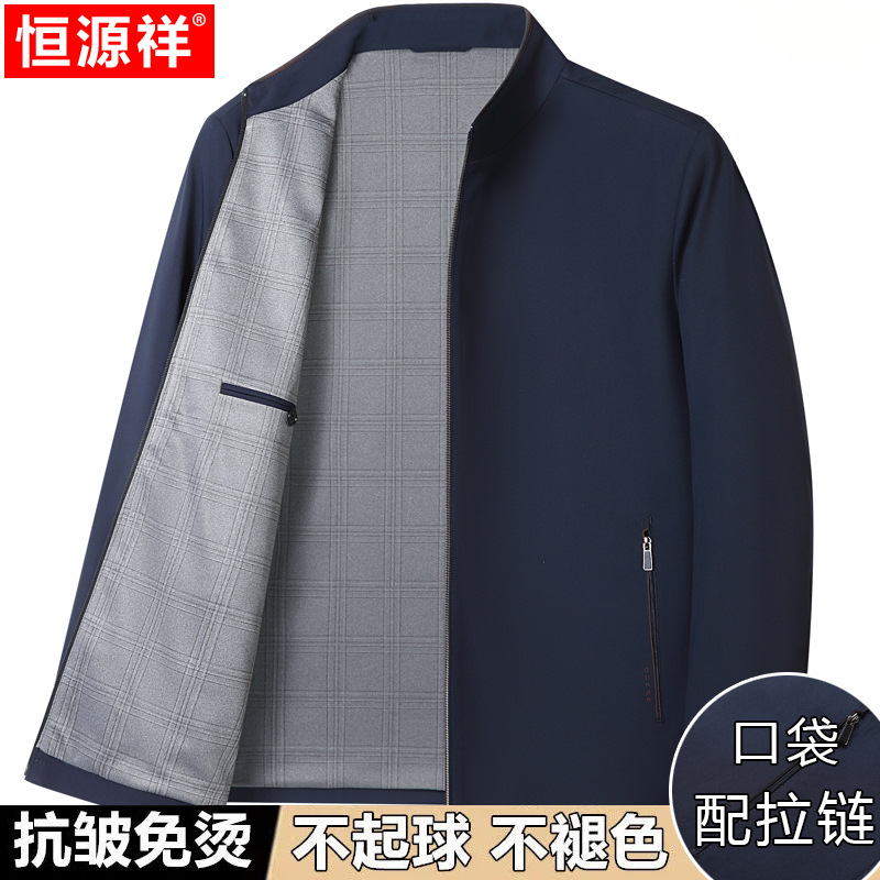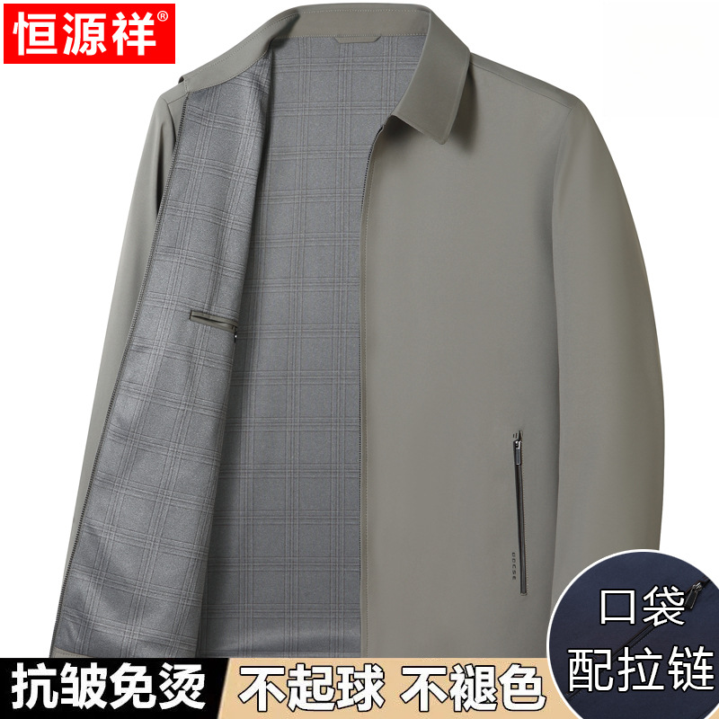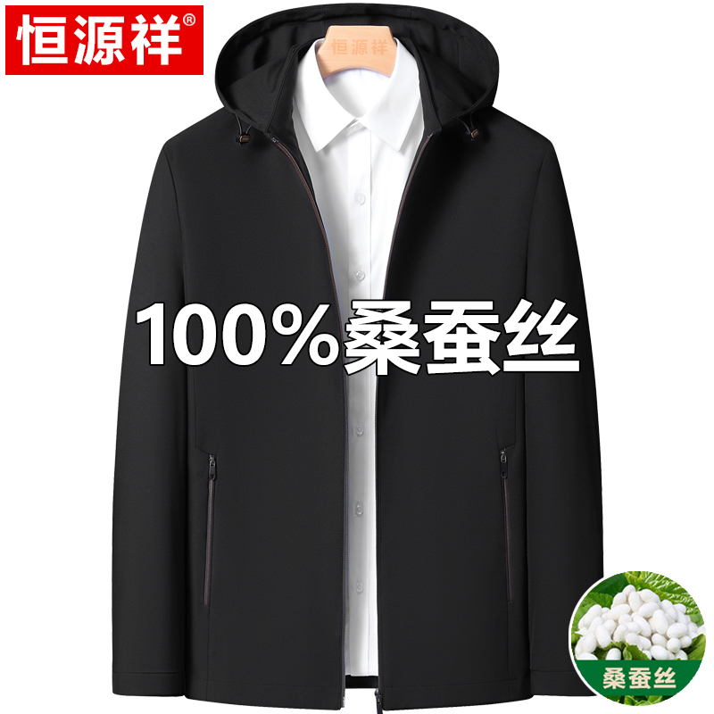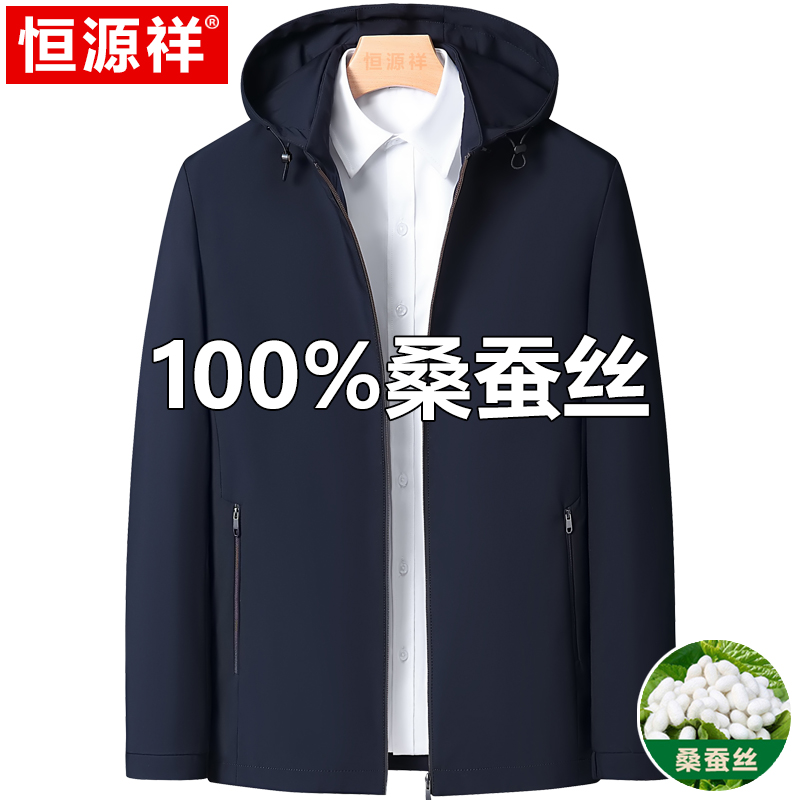 Hengyuanxiang 중년 봄 여름 아빠의 플러스 사이즈 라펠 재킷 남성용 멀버리 실크 공무원 행정 간부 재킷스토어 가기