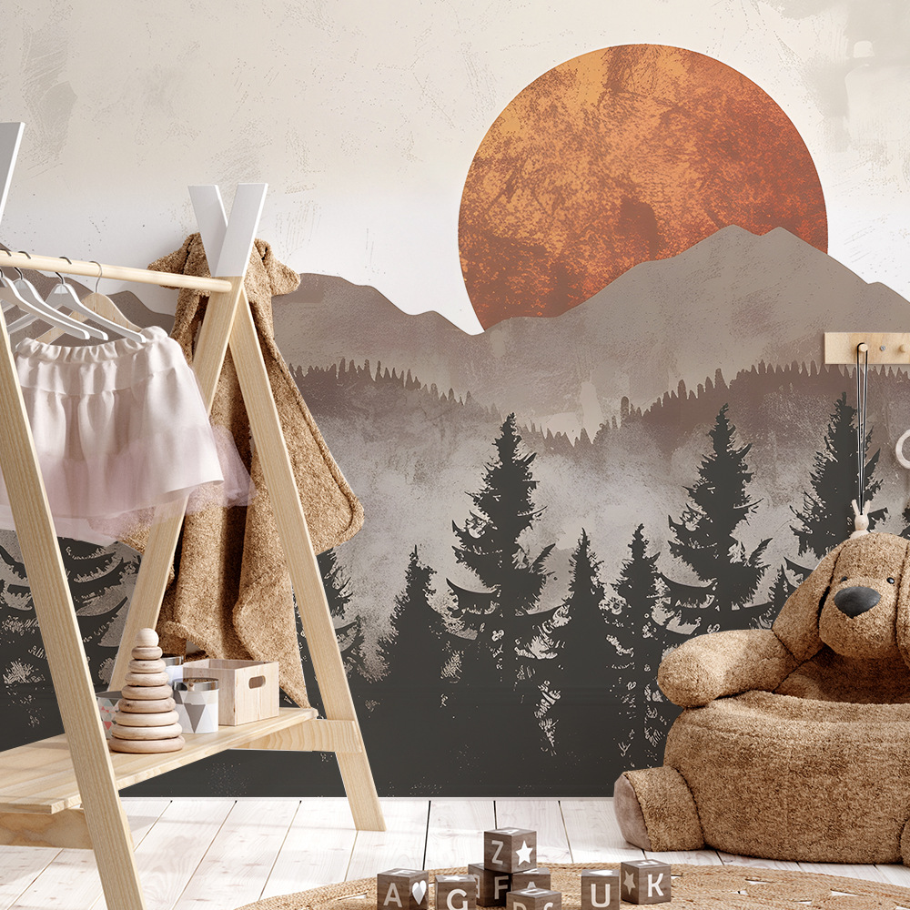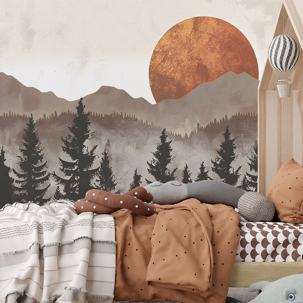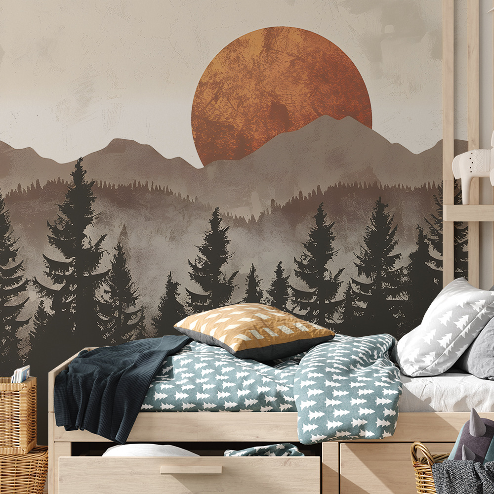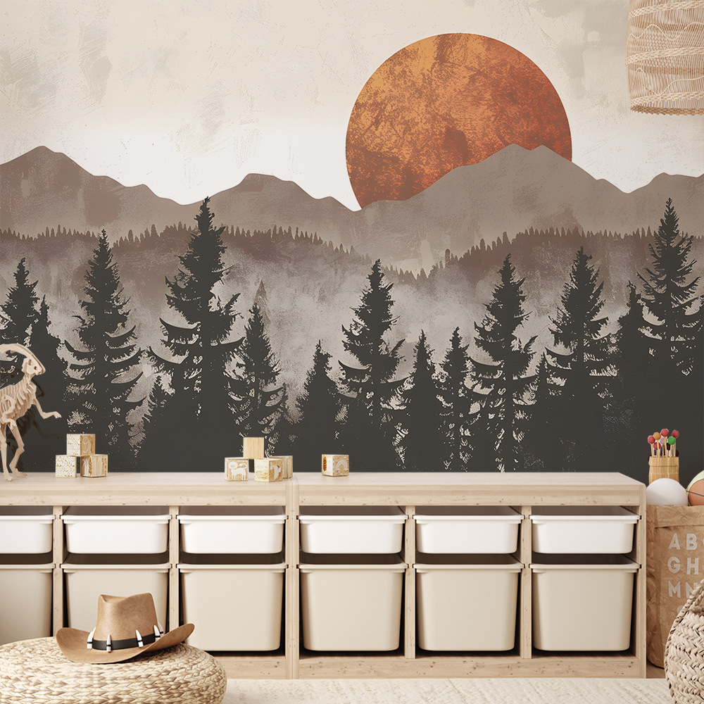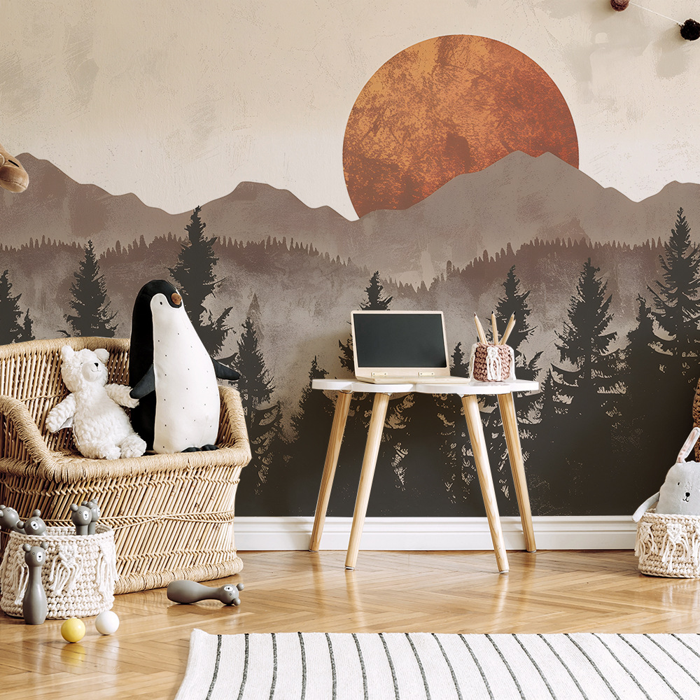 Fun-L036 간단한 일몰 숲 산 침실 거실 집 배경 벽 미화 장식 벽 스티커 도매