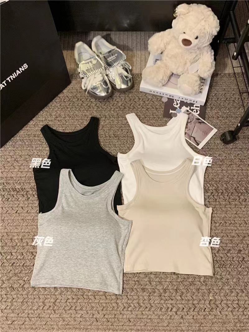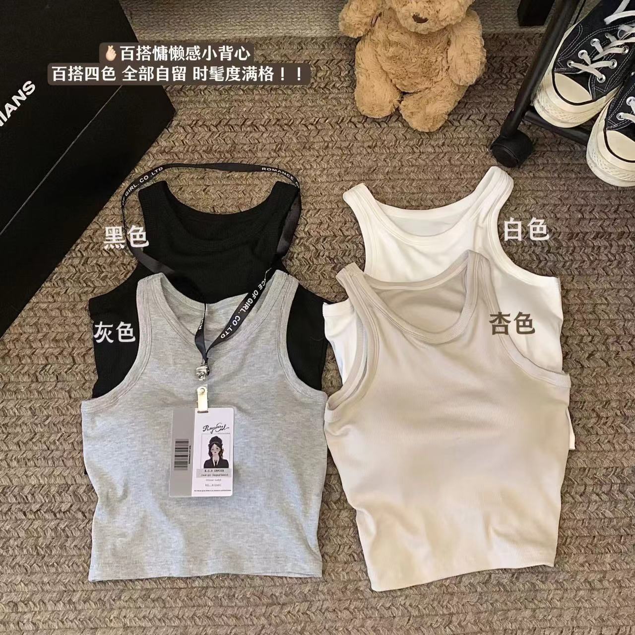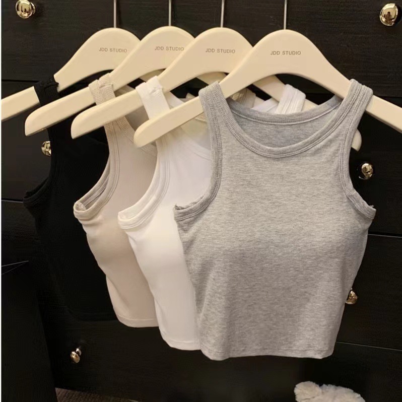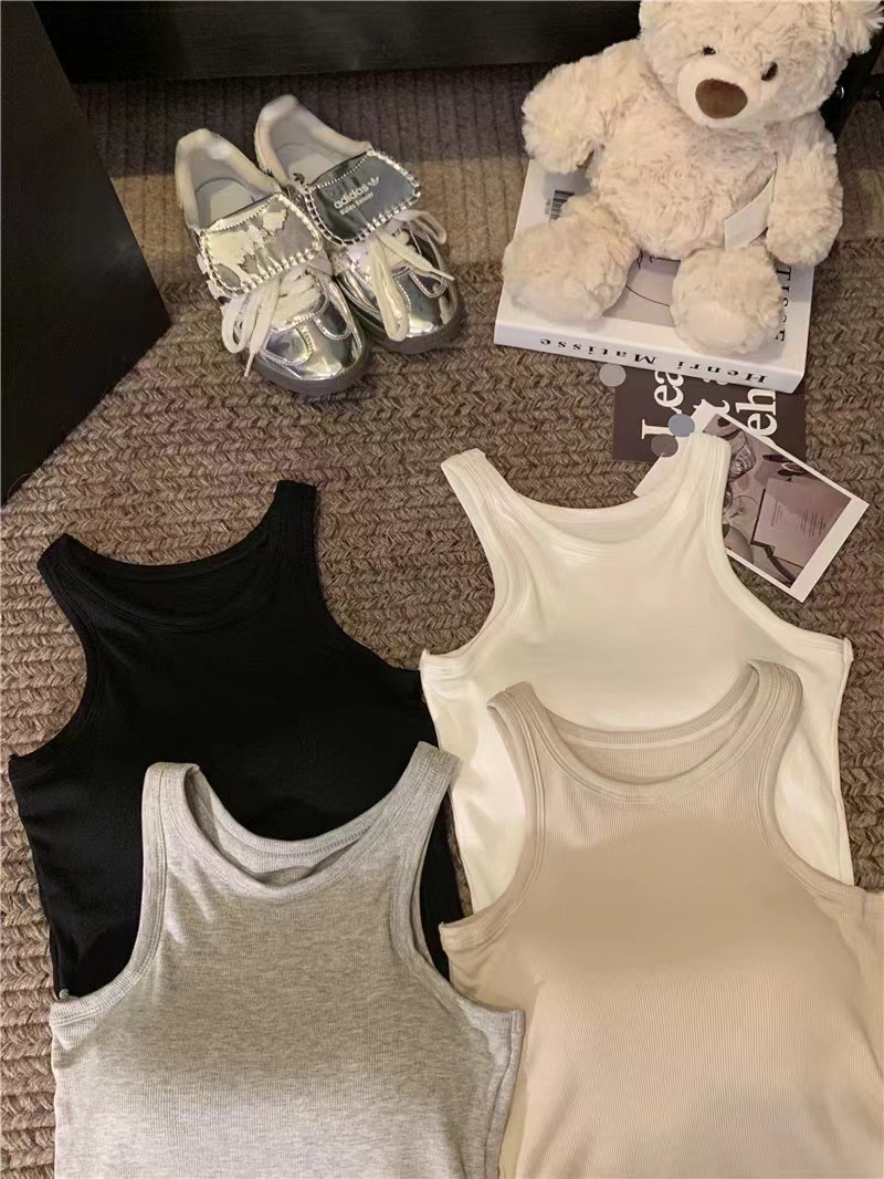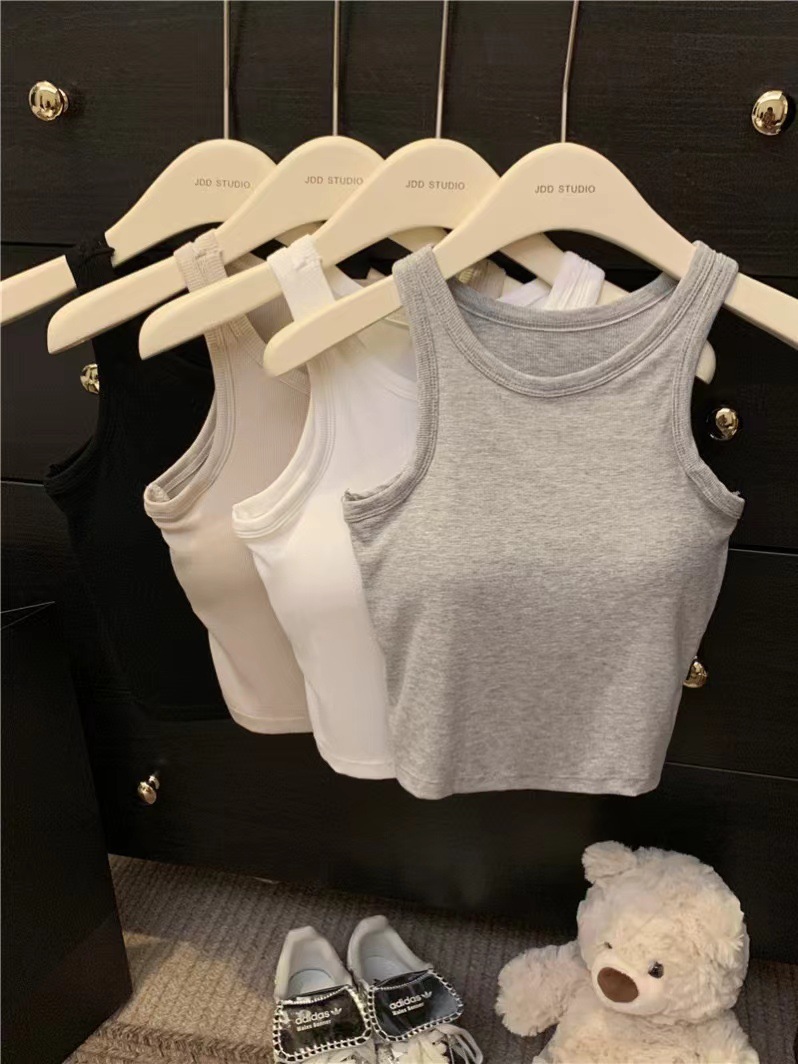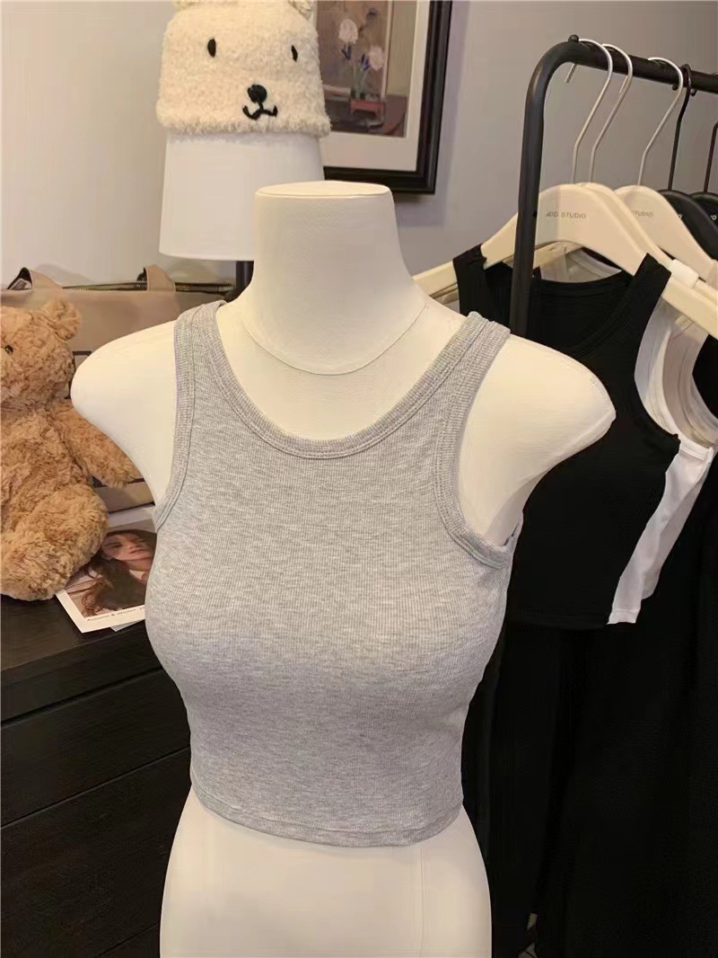 품질 버전 틈새 슬링 스포츠 아름다운 백 캐미솔 여성 여름 짧은 배꼽 노출 슬림 피트 가슴 패드가있는 다목적