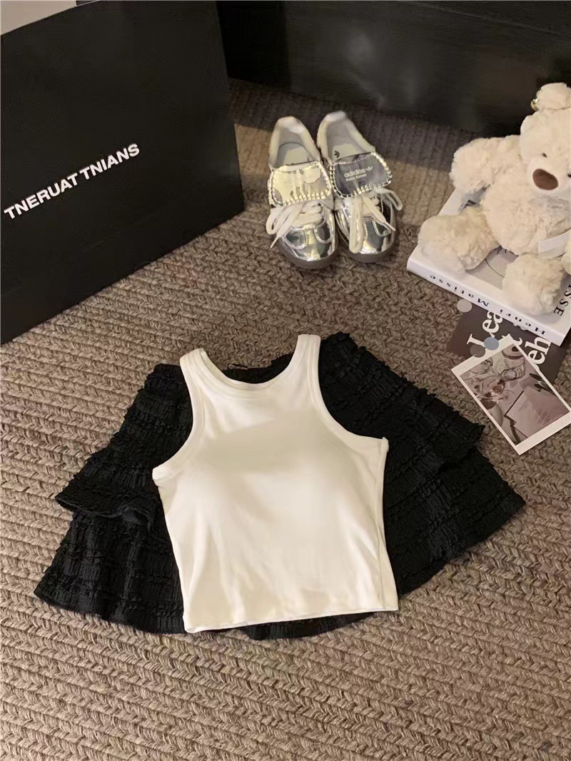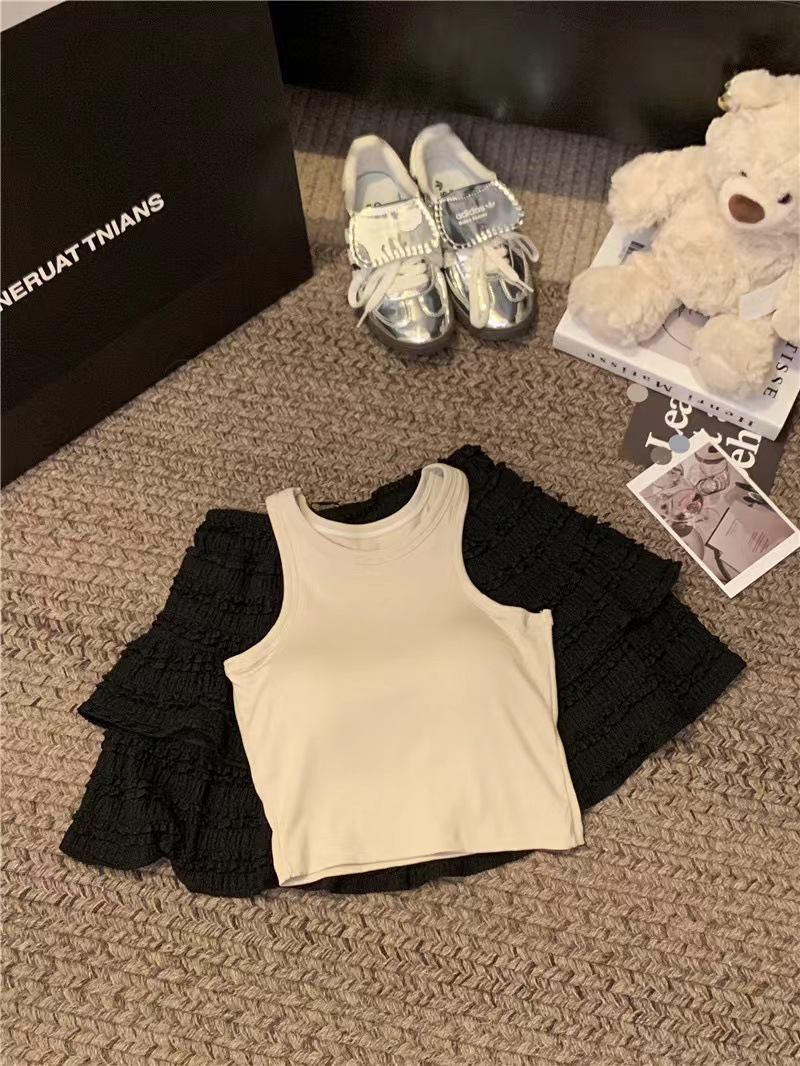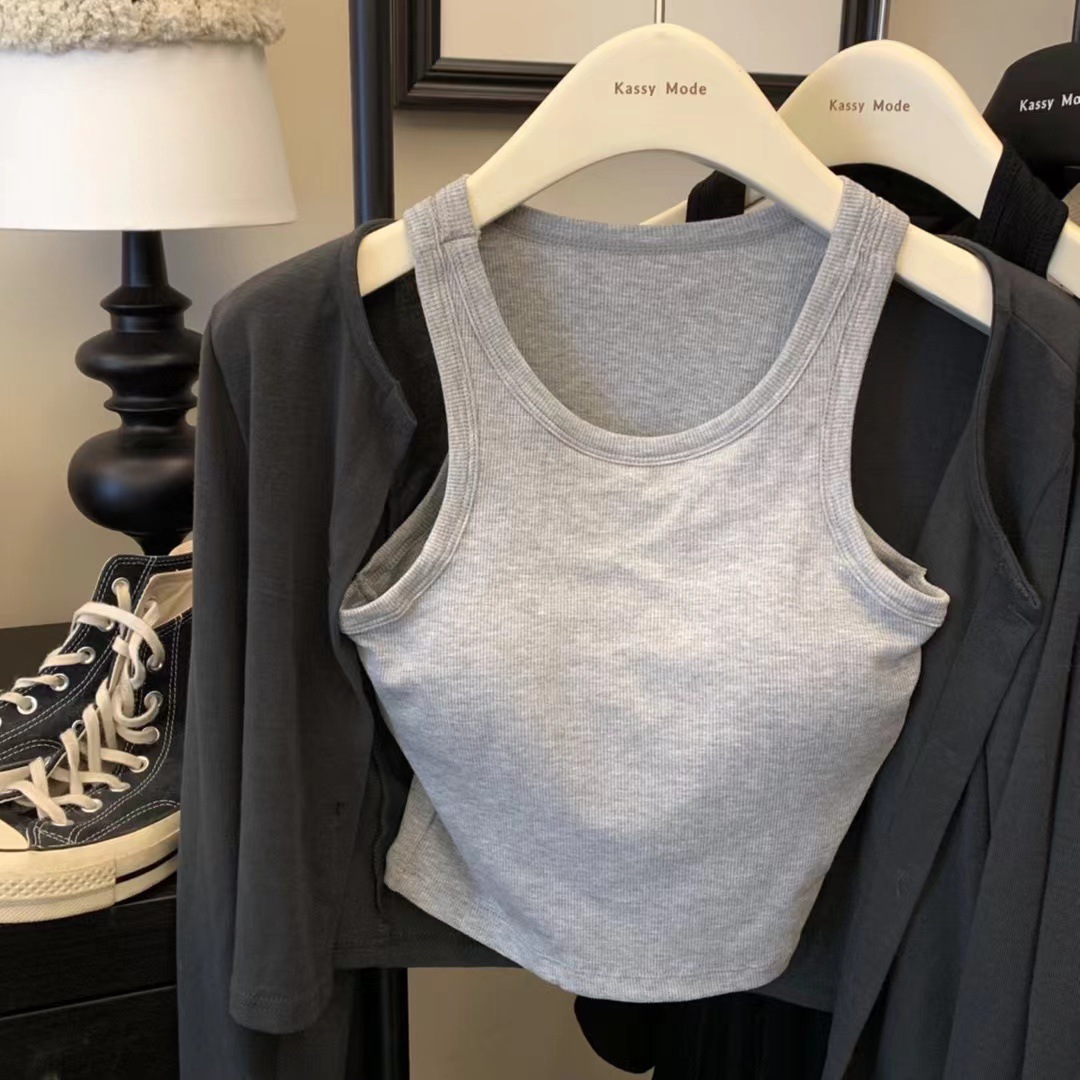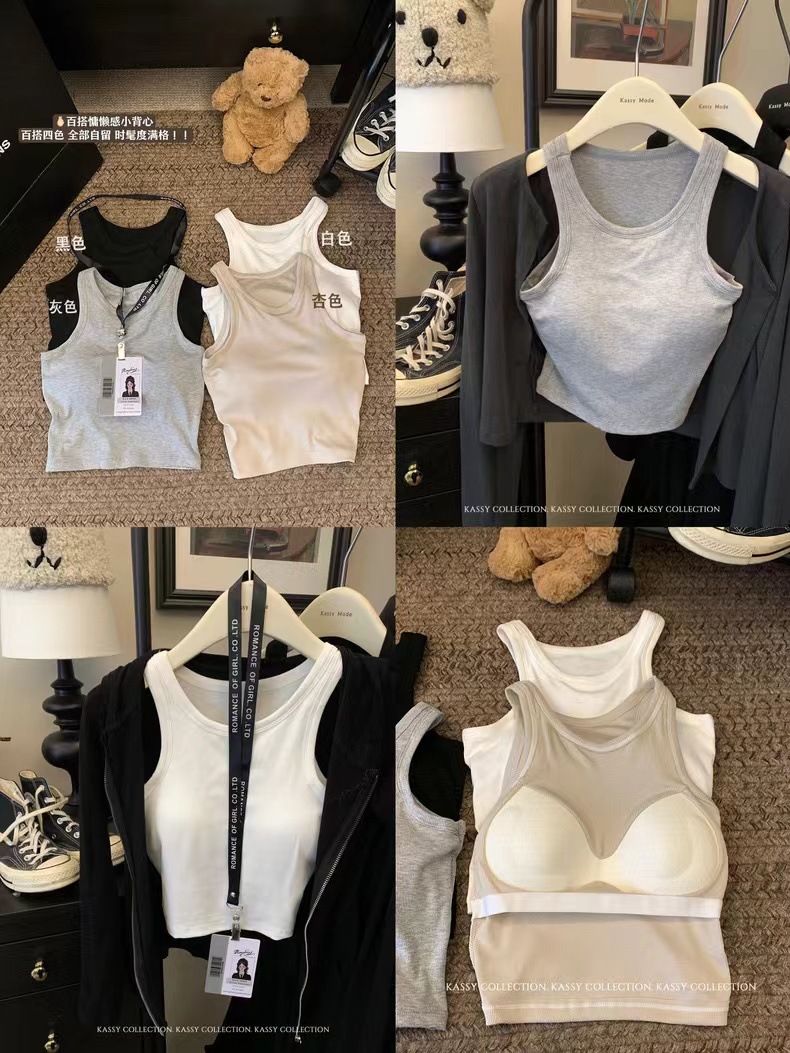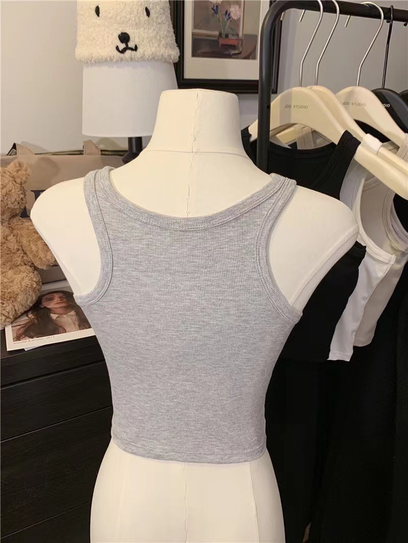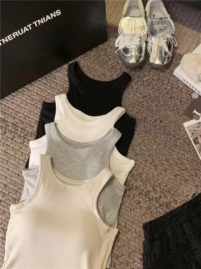 품질 버전 틈새 슬링 스포츠 아름다운 백 캐미솔 여성 여름 짧은 배꼽 노출 슬림 피트 가슴 패드가있는 다목적