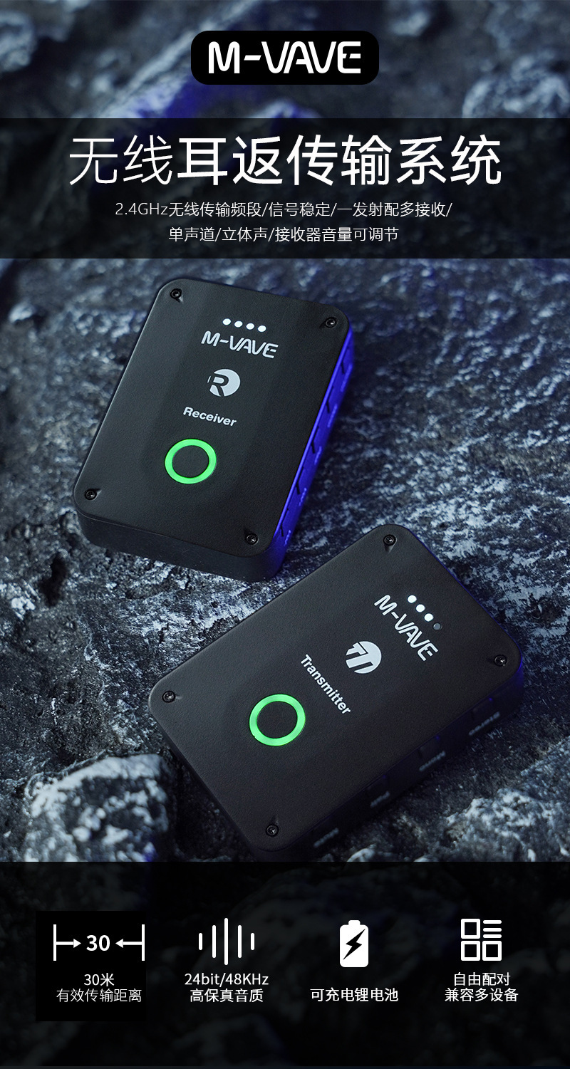 헤드폰이없는 M-VAVE 무선 이어 백 모니터 헤드셋 무선 칼라 클립 마이크 2.4G 라이브 국경 간 신제품스토어 가기