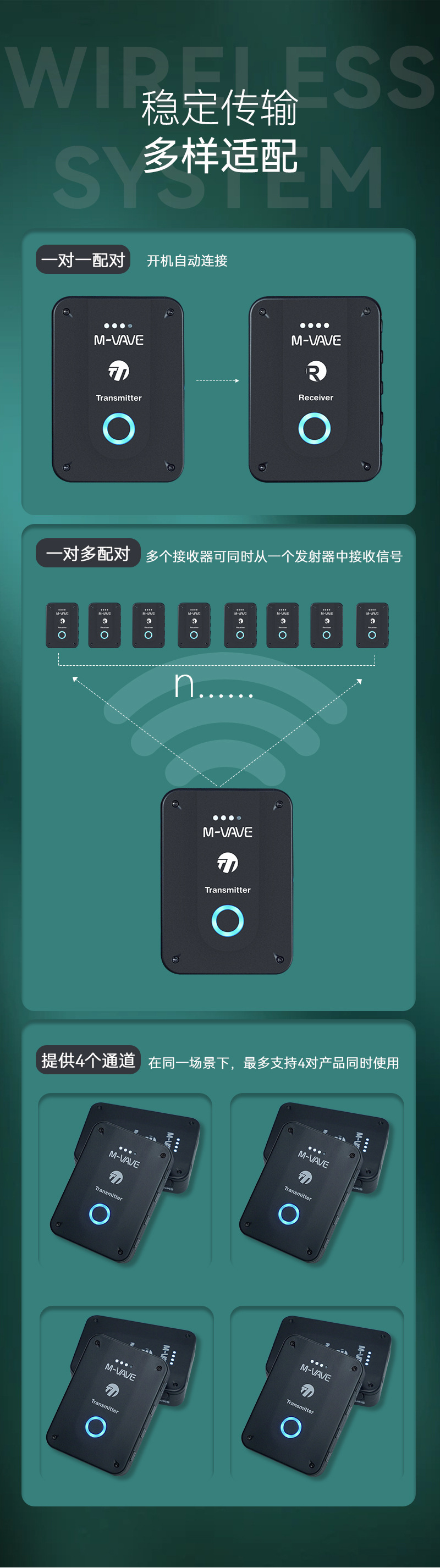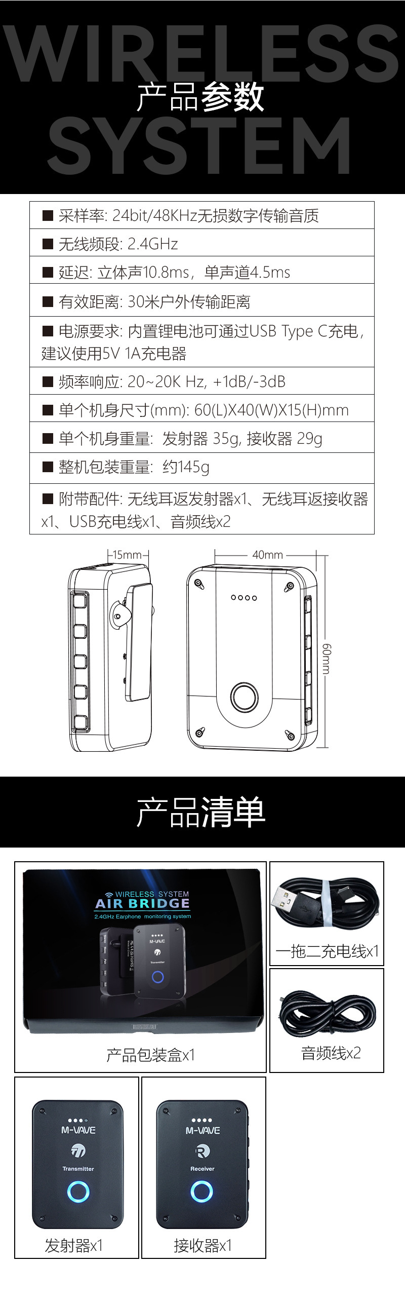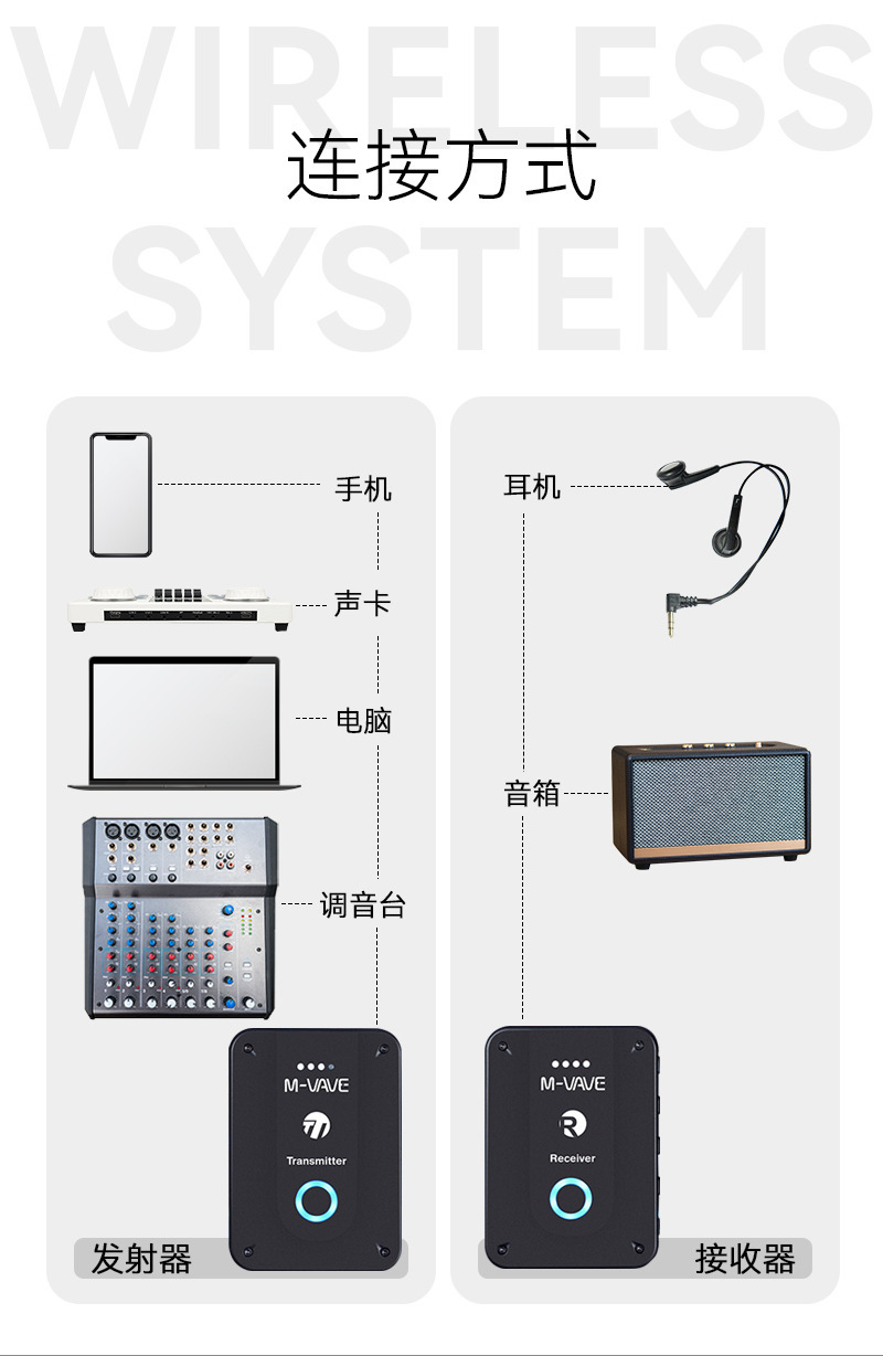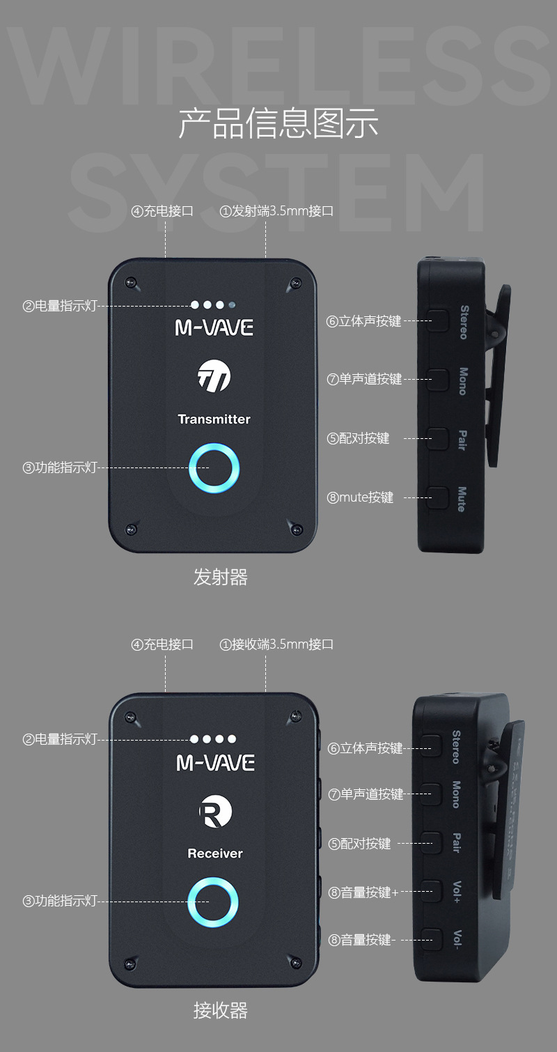 헤드폰이없는 M-VAVE 무선 이어 백 모니터 헤드셋 무선 칼라 클립 마이크 2.4G 라이브 국경 간 신제품