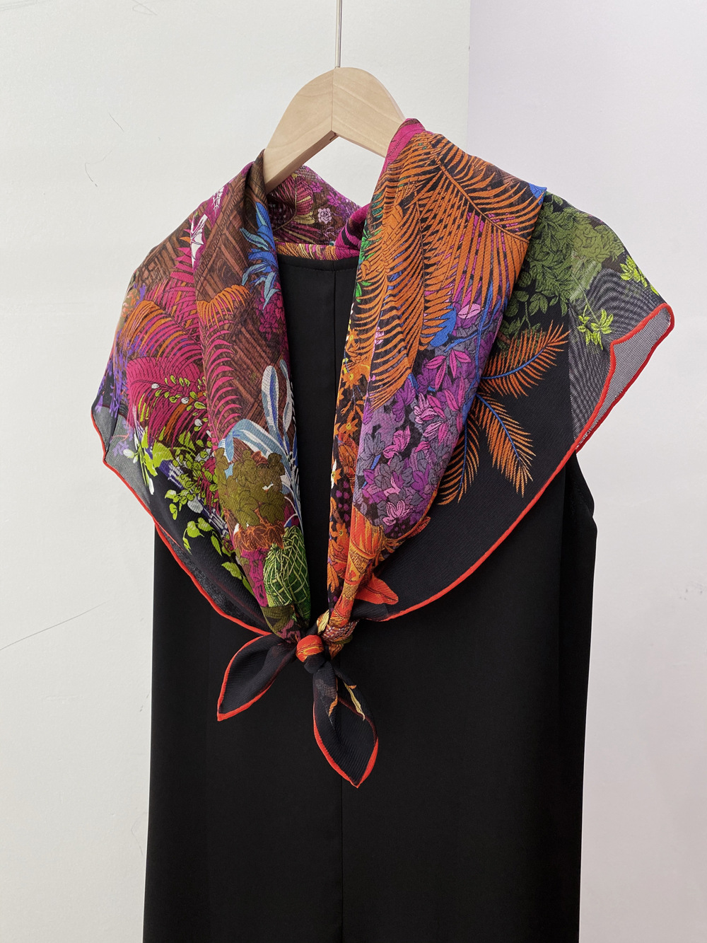 고급 고정 짠 실크 Qiliza 실크 스카프 여자 올 매치 여름 선 스크린 멀 베리 실크 숄 블랙과 레드 컬러 매칭스토어 가기