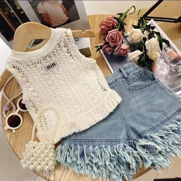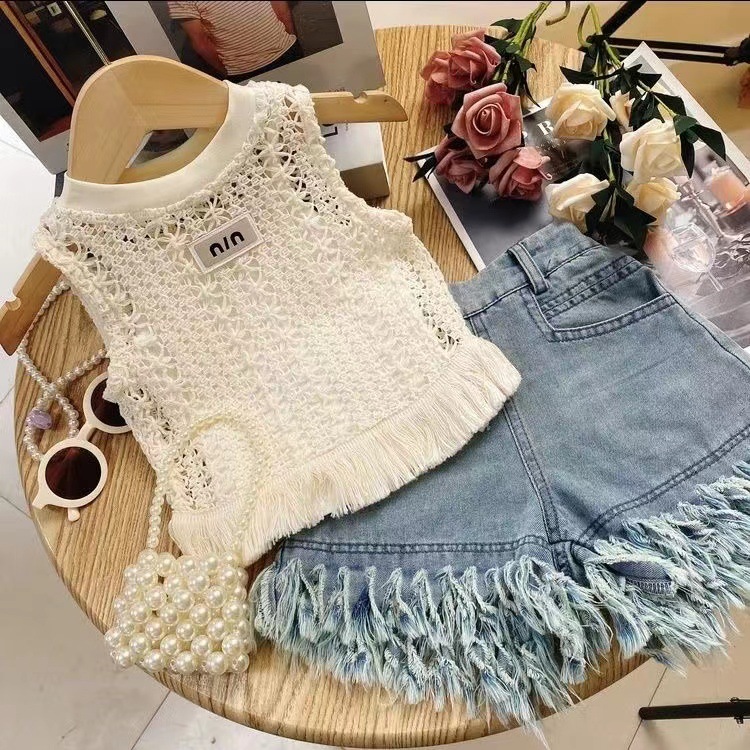 여자 2024 여름 유행 한국 스타일 투피스 여름 조끼 청바지 여름 원피스 세트