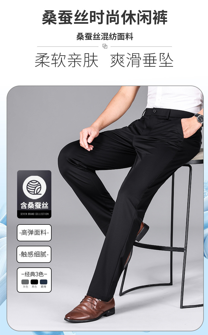 하이 엔드 뽕나무 실크 시리즈 바지 남성 비즈니스 쿨 통기성 스트레이트 바지 여름 얇은 캐주얼 남성 바지