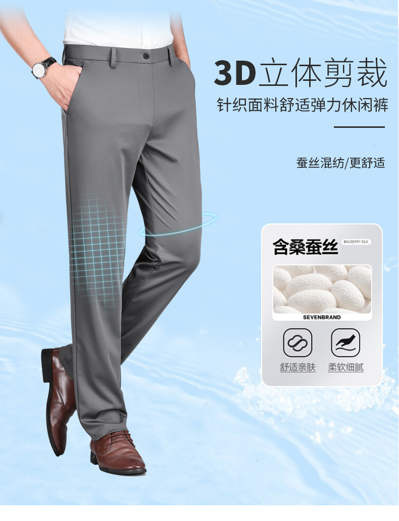 하이 엔드 뽕나무 실크 시리즈 바지 남성 비즈니스 쿨 통기성 스트레이트 바지 여름 얇은 캐주얼 남성 바지스토어 가기