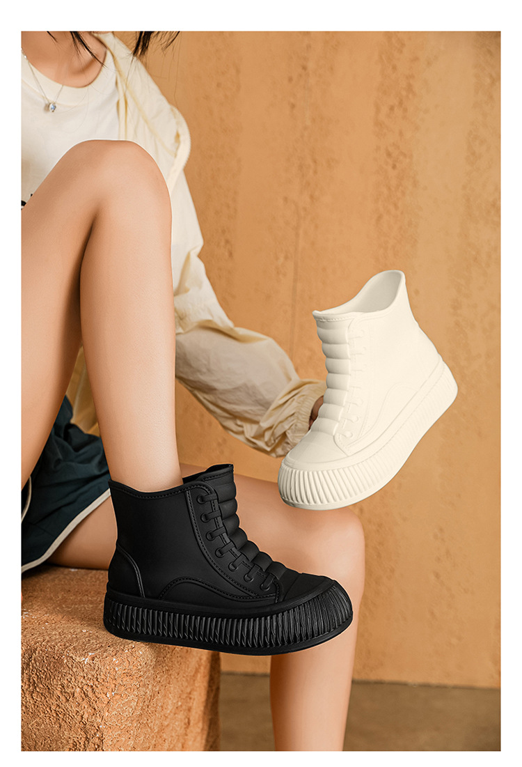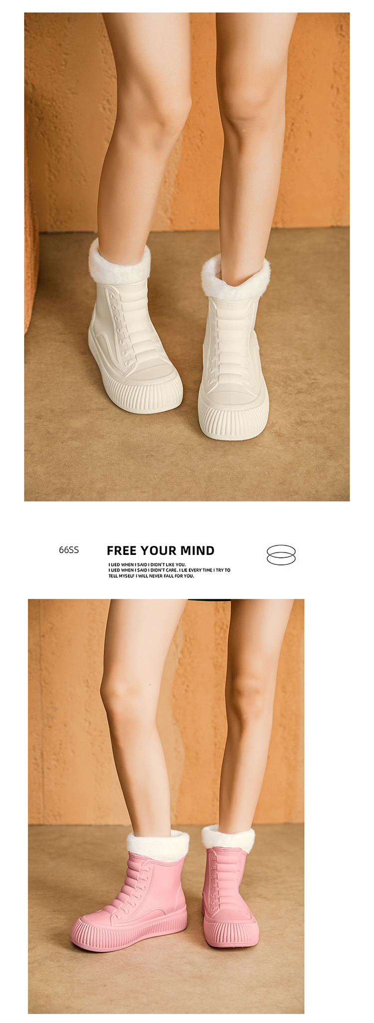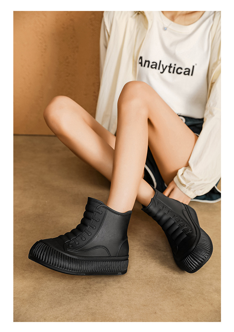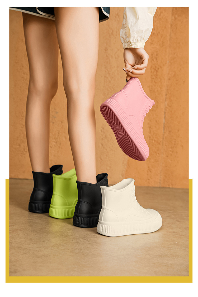 Daifa 새로운 중간 배럴 장화 여성 고무 신발 외부 착용 패션 미끄럼 방지 워터 부츠 두꺼운 하단 워터 슈즈 기모 짧은 장화