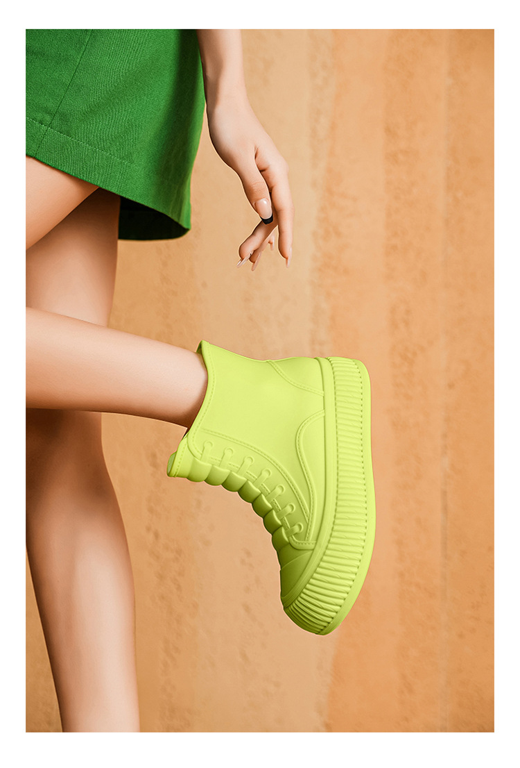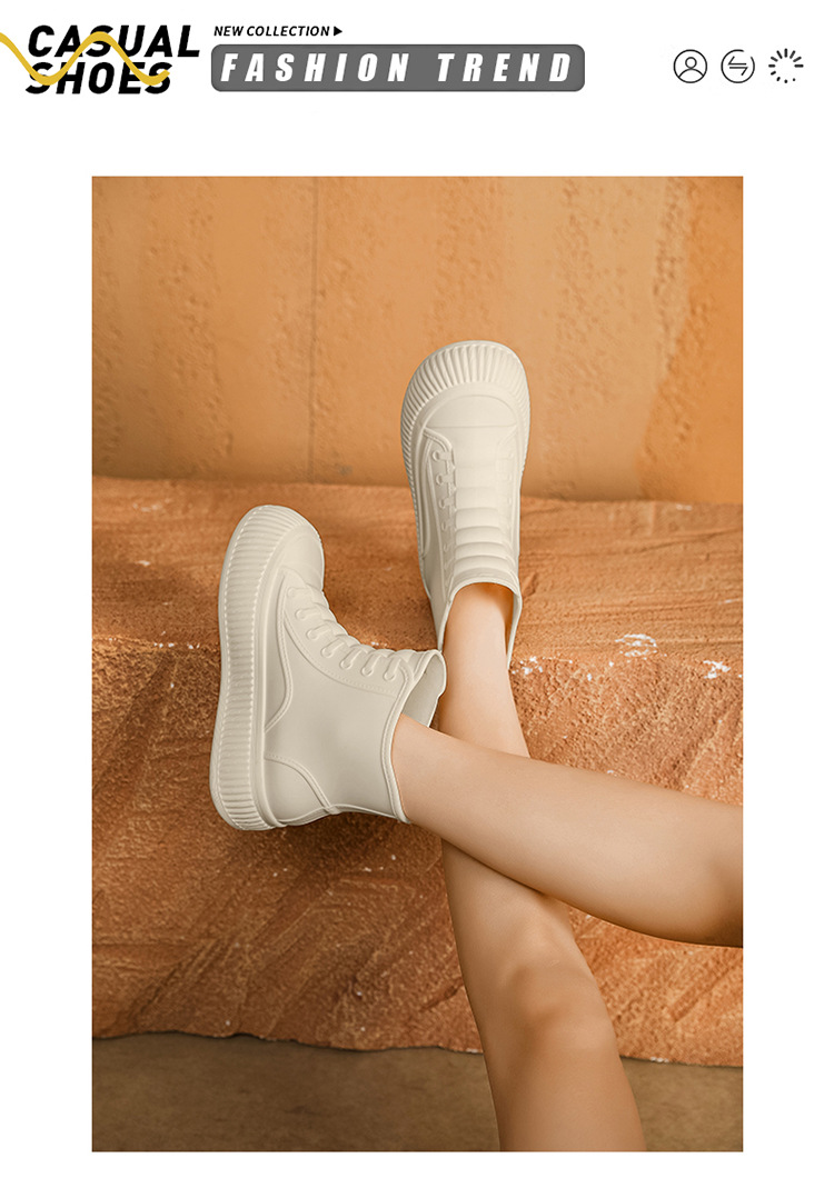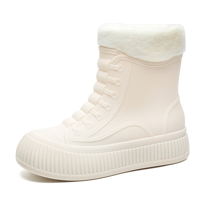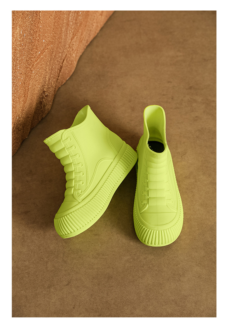 Daifa 새로운 중간 배럴 장화 여성 고무 신발 외부 착용 패션 미끄럼 방지 워터 부츠 두꺼운 하단 워터 슈즈 기모 짧은 장화