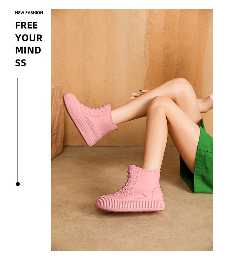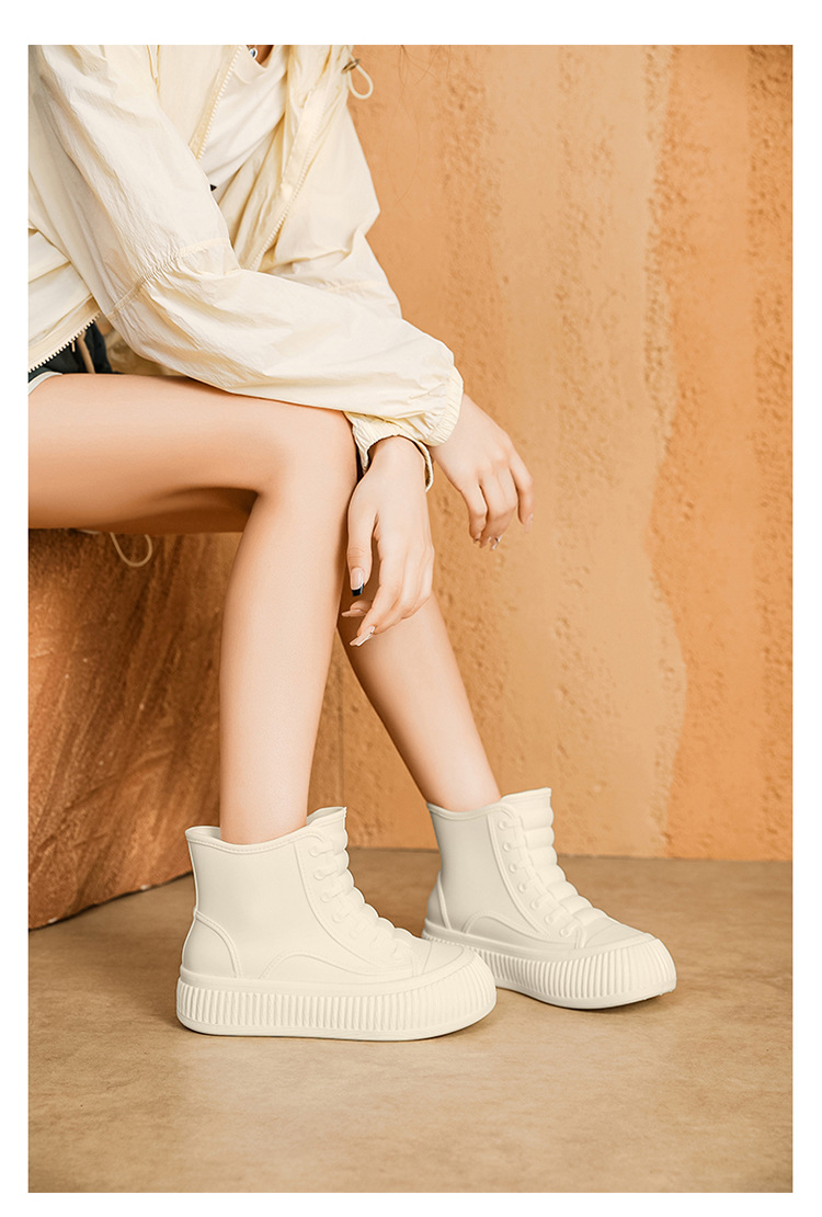 Daifa 새로운 중간 배럴 장화 여성 고무 신발 외부 착용 패션 미끄럼 방지 워터 부츠 두꺼운 하단 워터 슈즈 기모 짧은 장화스토어 가기