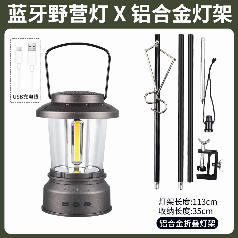 • 레트로 캠핑 램프 (내장 블루투스 오디오) 1.1m 램프 스탠드