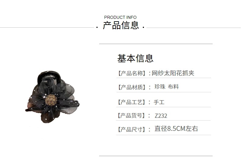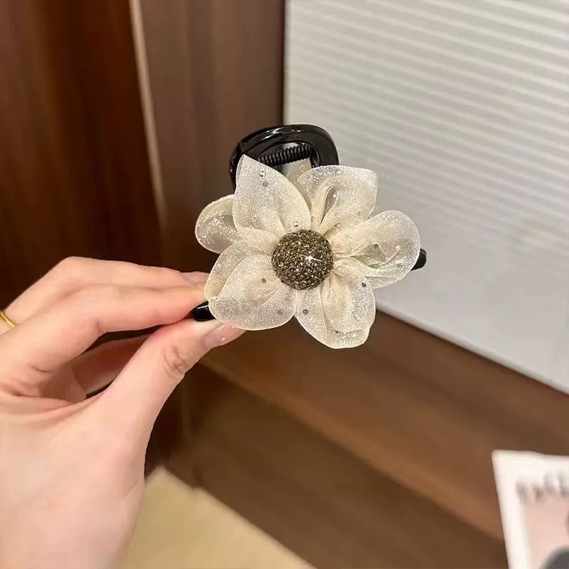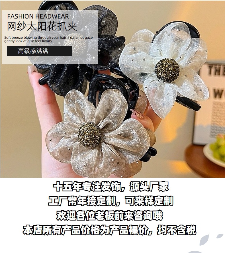 여성을위한 머리 머리 상어 클립의 여름 새로운 Gipsophila 플래시 다이아몬드 메쉬 해바라기 클립 잡아 높은 등급의 모든 경기 뒤