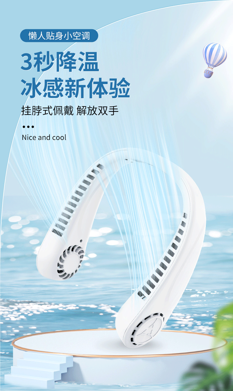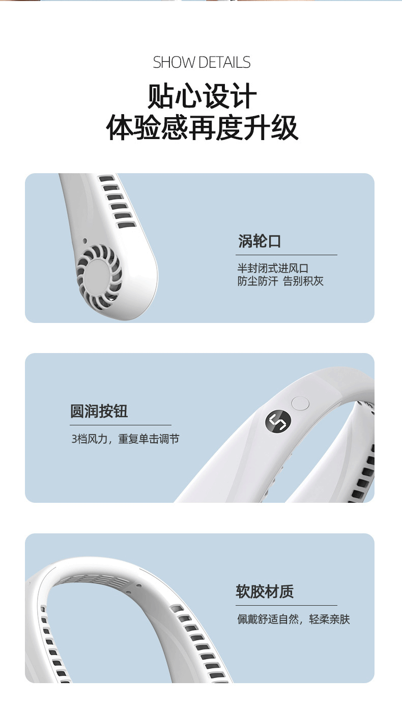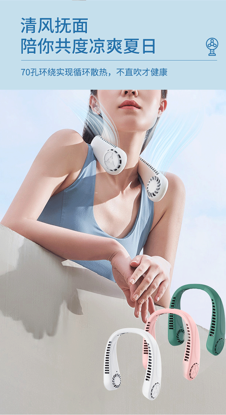 국경 간 뜨거운 판매 USB 게으른 목 팬 5 단 디지털 디스플레이 목 팬 야외 높은 내구성 휴대용 bladless
