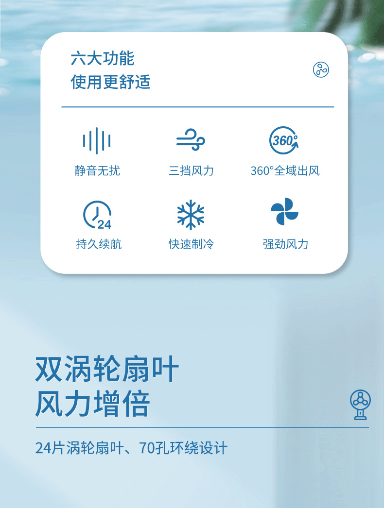 • [블루] 3000 mA 디지털 디스플레이 5 기어 교수형 넥 팬