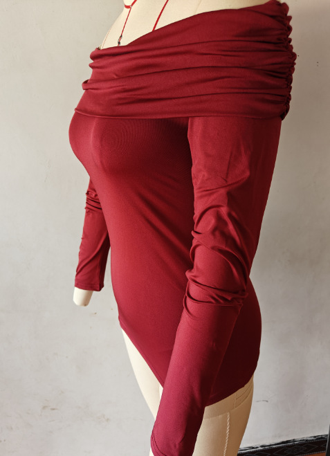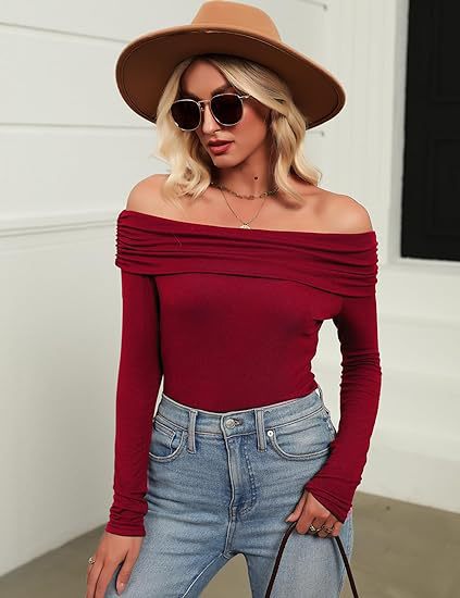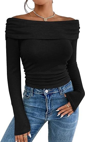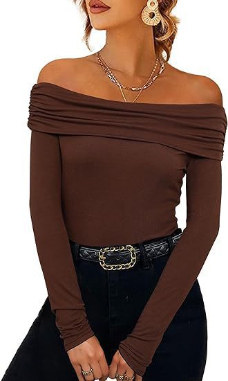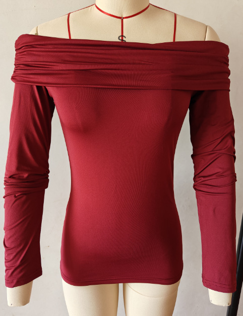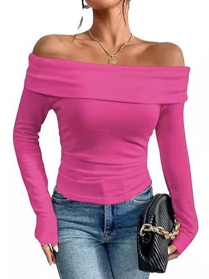 2024 유럽과 미국의 국경 간 아마존 여성의 섹시한 어깨 슬림핏 긴소매베이스 어깨 여성용 탑 티셔츠스토어 가기