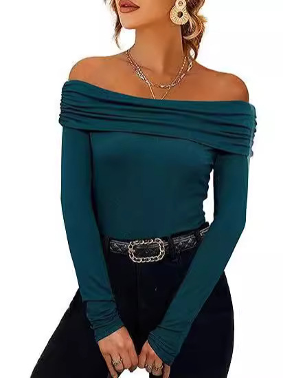 2024 유럽과 미국의 국경 간 아마존 여성의 섹시한 어깨 슬림핏 긴소매베이스 어깨 여성용 탑 티셔츠