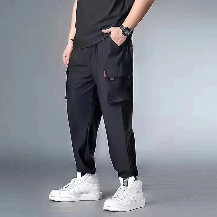 플러스 사이즈 캐주얼 바지 남성 여름 아이스 실크 플러스 비료 플러스 사이즈 300kg 바지 조커 트렌드 느슨한 작업 바지스토어 가기