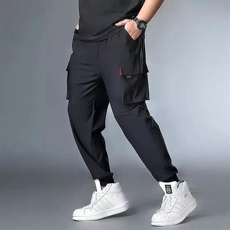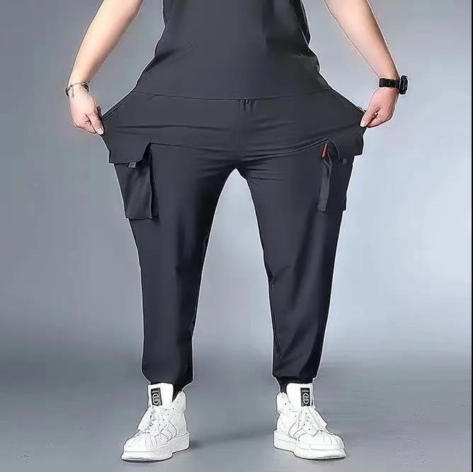 플러스 사이즈 캐주얼 바지 남성 여름 아이스 실크 플러스 비료 플러스 사이즈 300kg 바지 조커 트렌드 느슨한 작업 바지