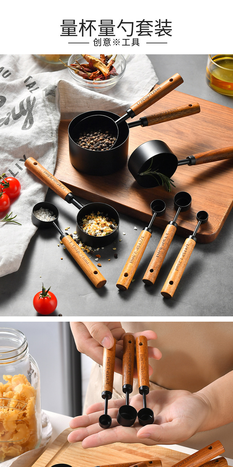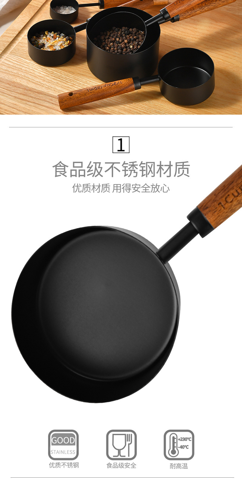 • 아카시아 나무 측정 컵 세트 4 (검정)