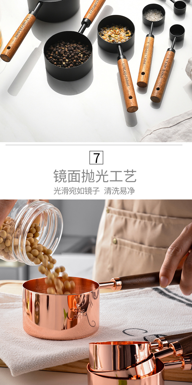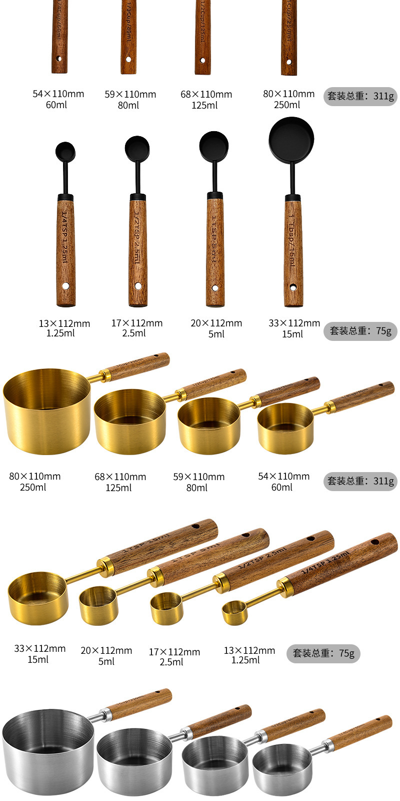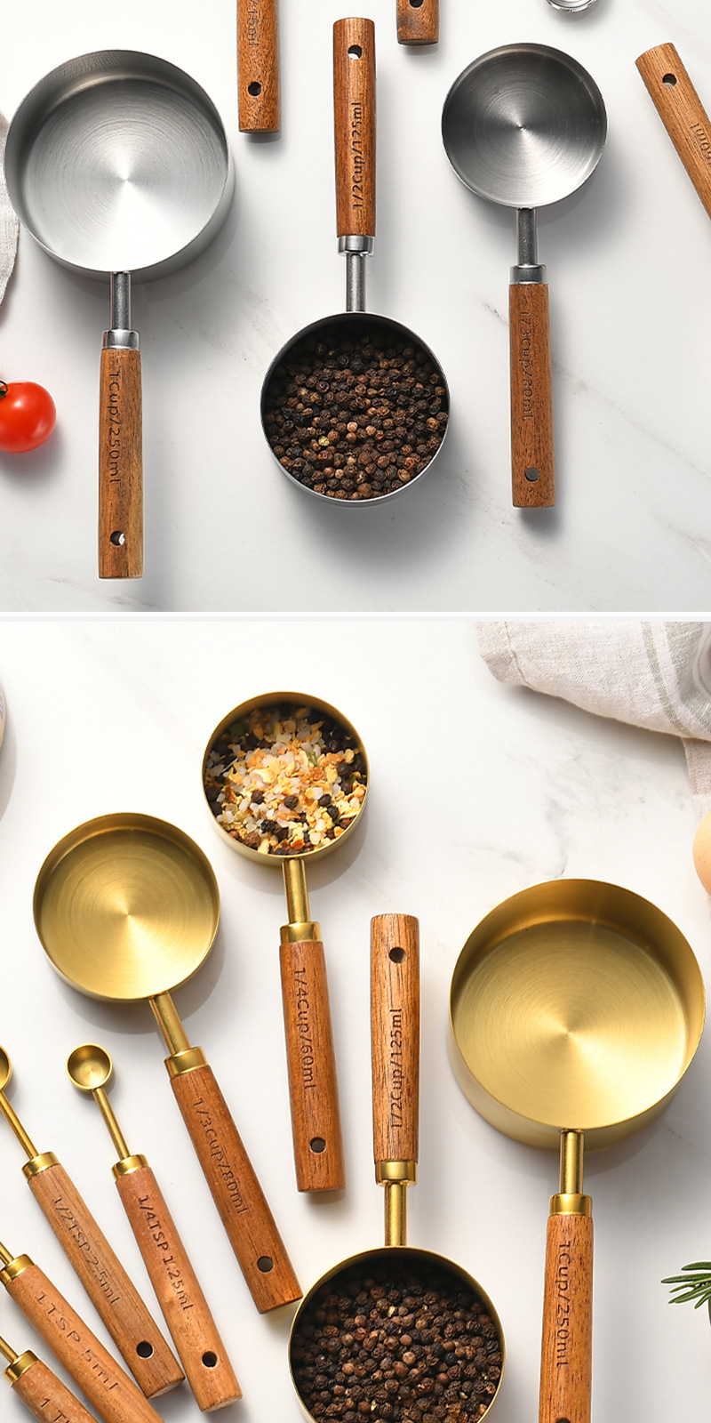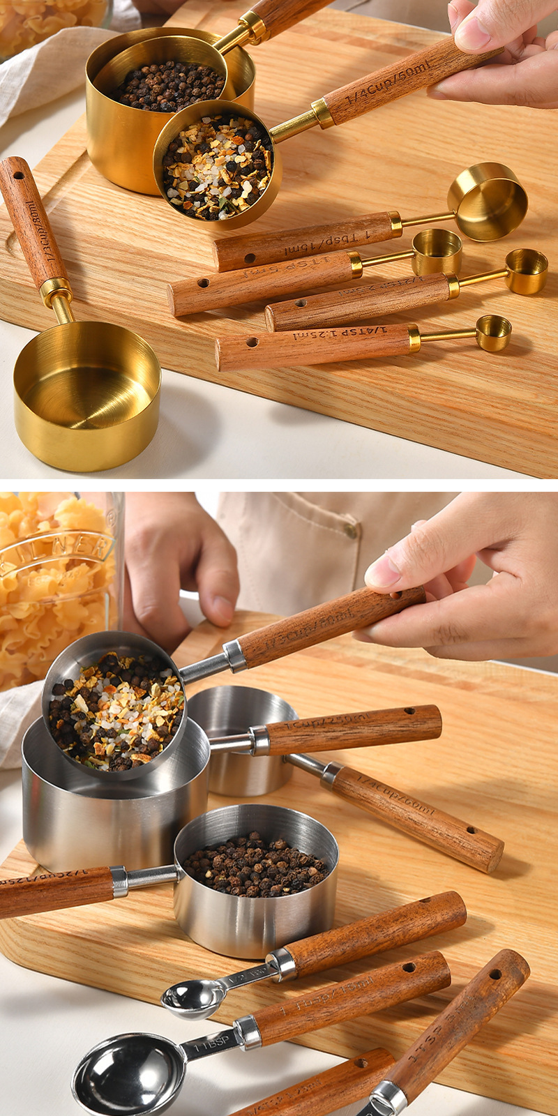 국경 간 금도금 스테인레스 스틸 측정 컵 측정 숟가락 8 피스 세트 졸업 측정 숟가락 주방 베이킹 도구스토어 가기