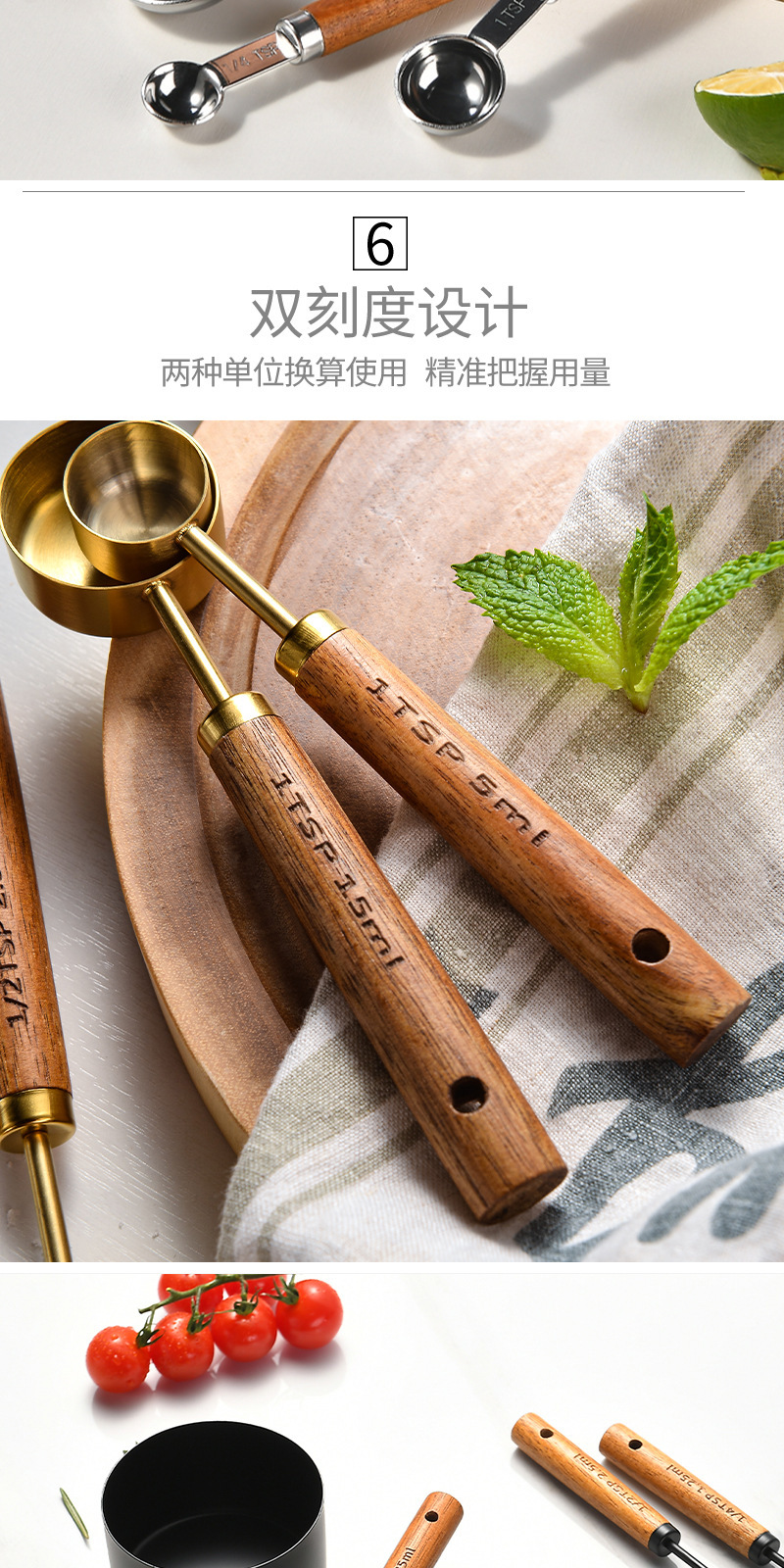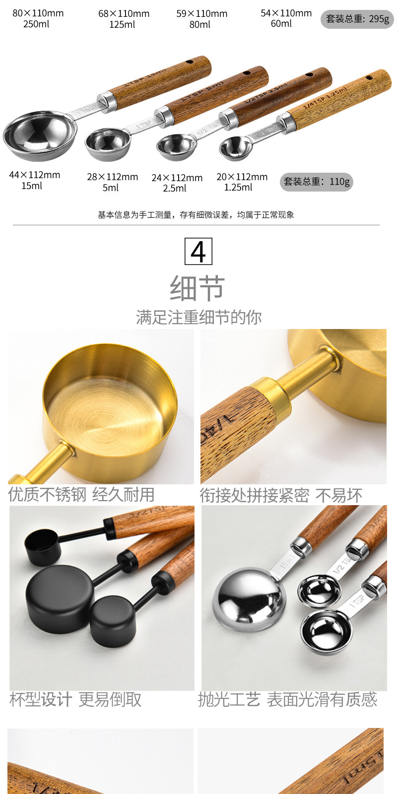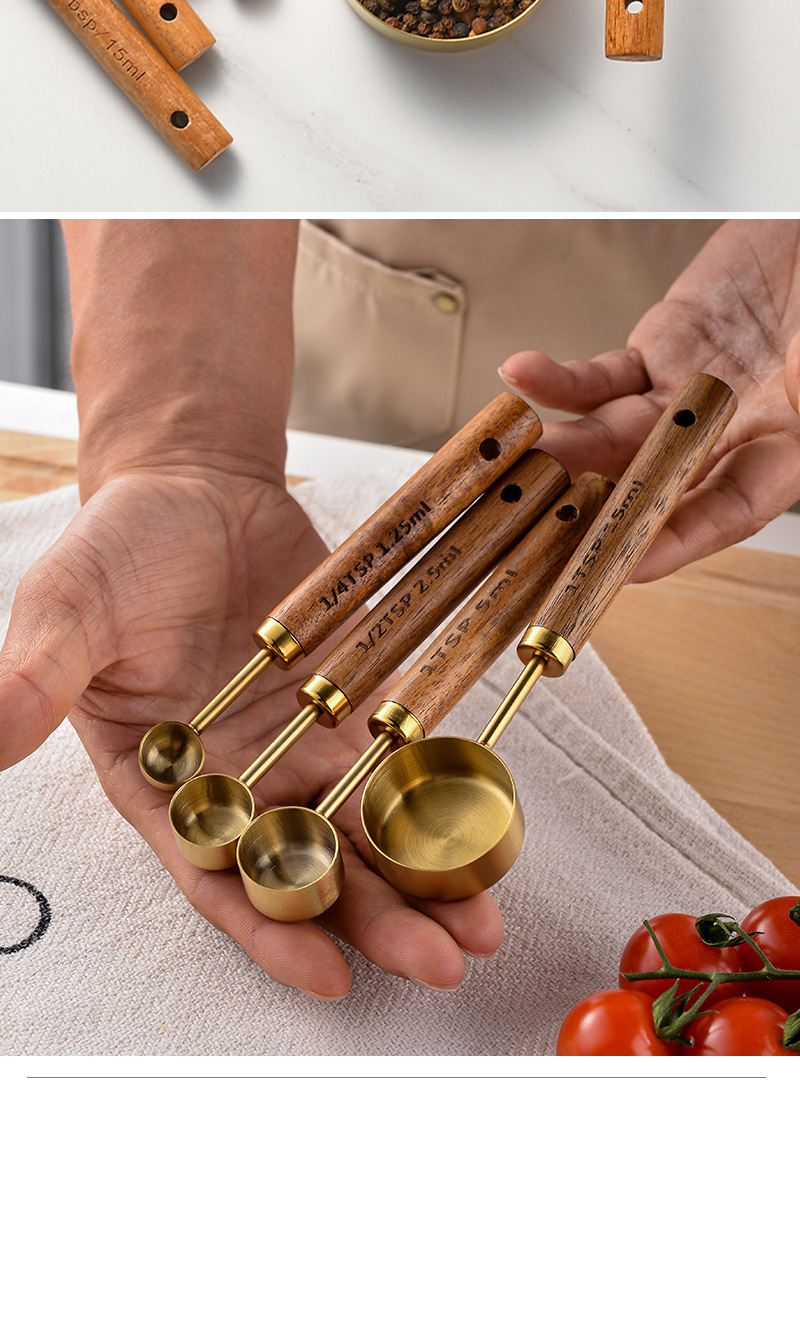 • 아카시아 나무 측정 숟가락 4 세트 (금 도금)