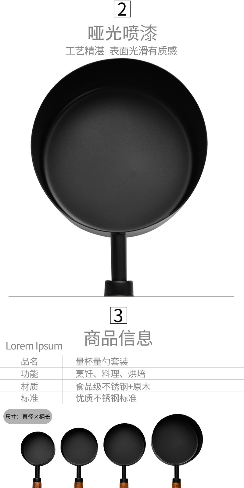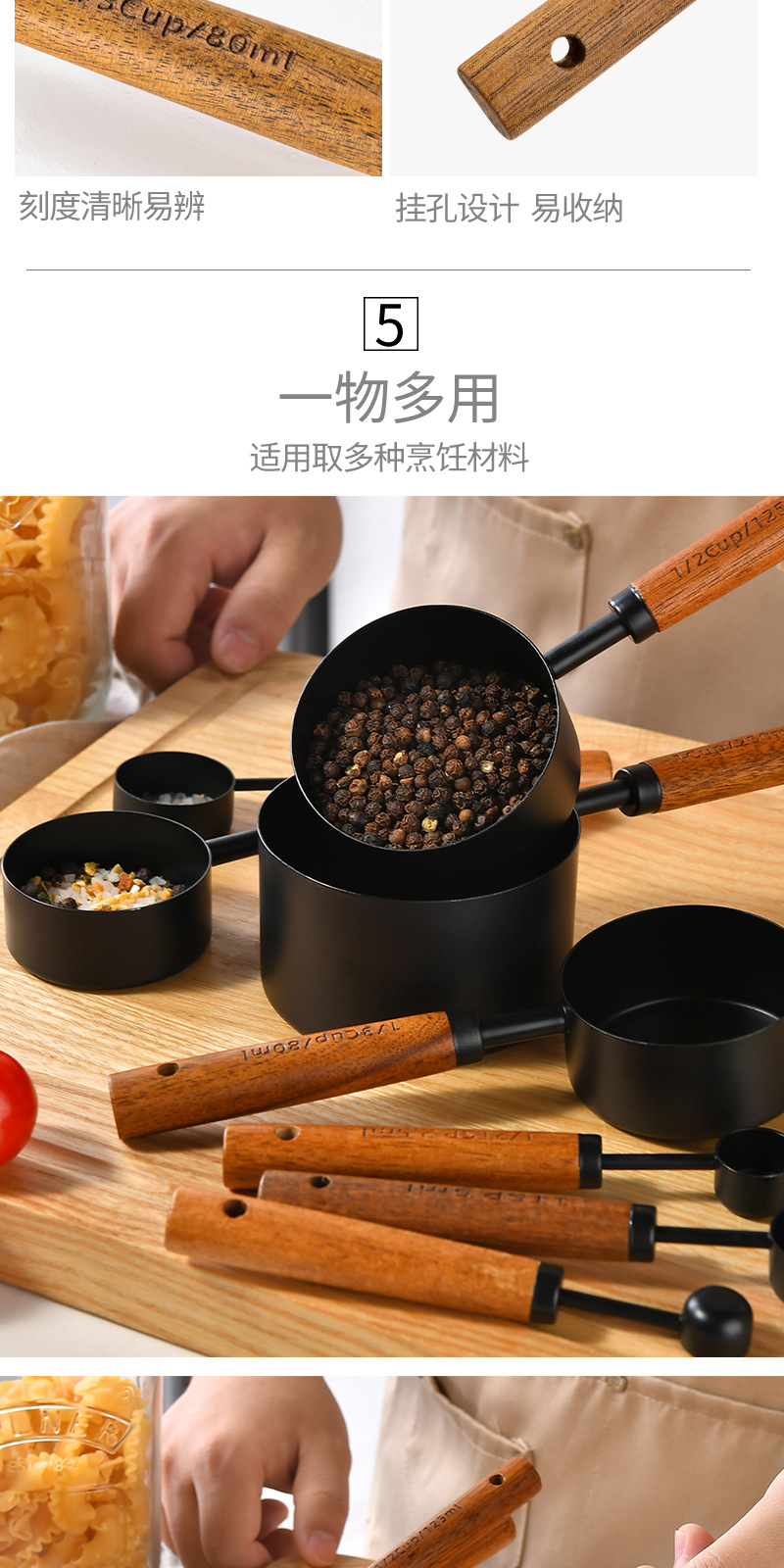 • 아카시아 나무 측정 숟가락 4 세트 (검정)