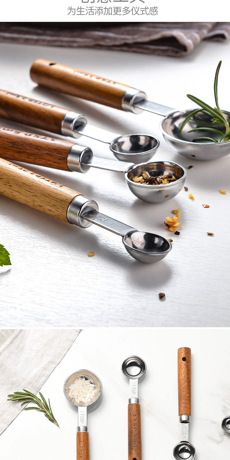 • 아카시아 나무 측정 숟가락 4 세트 (스테인레스 스틸 컬러)