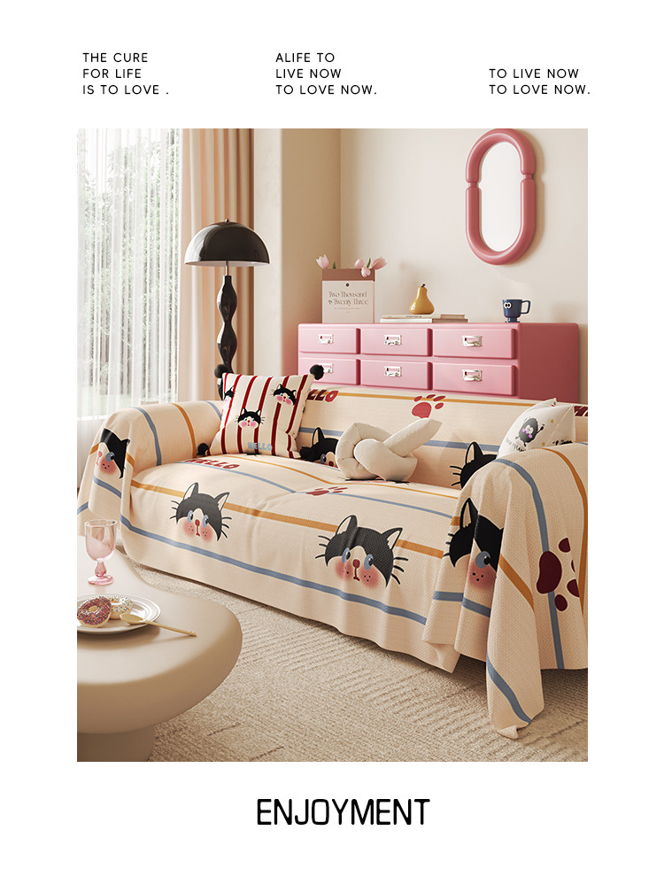 만화 고양이 소파 수건 분위기 소파 커버 천 수건 소파 먼지 커버 가정용 기계 빨 공장 도매