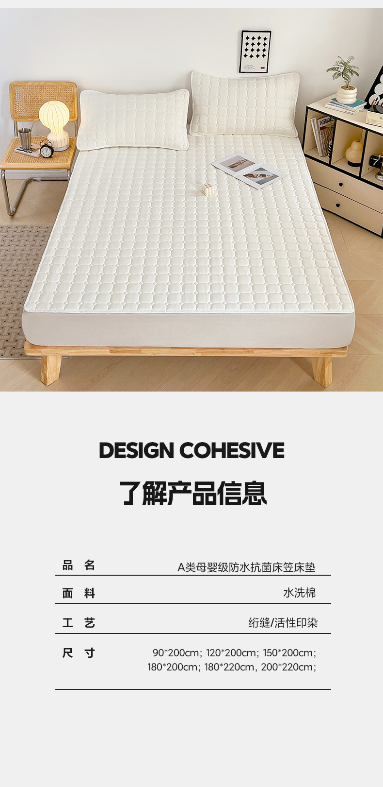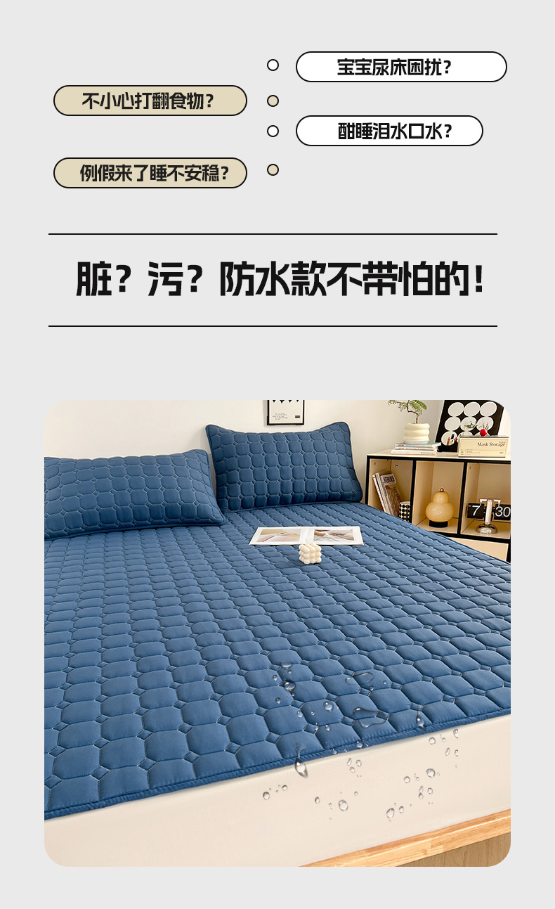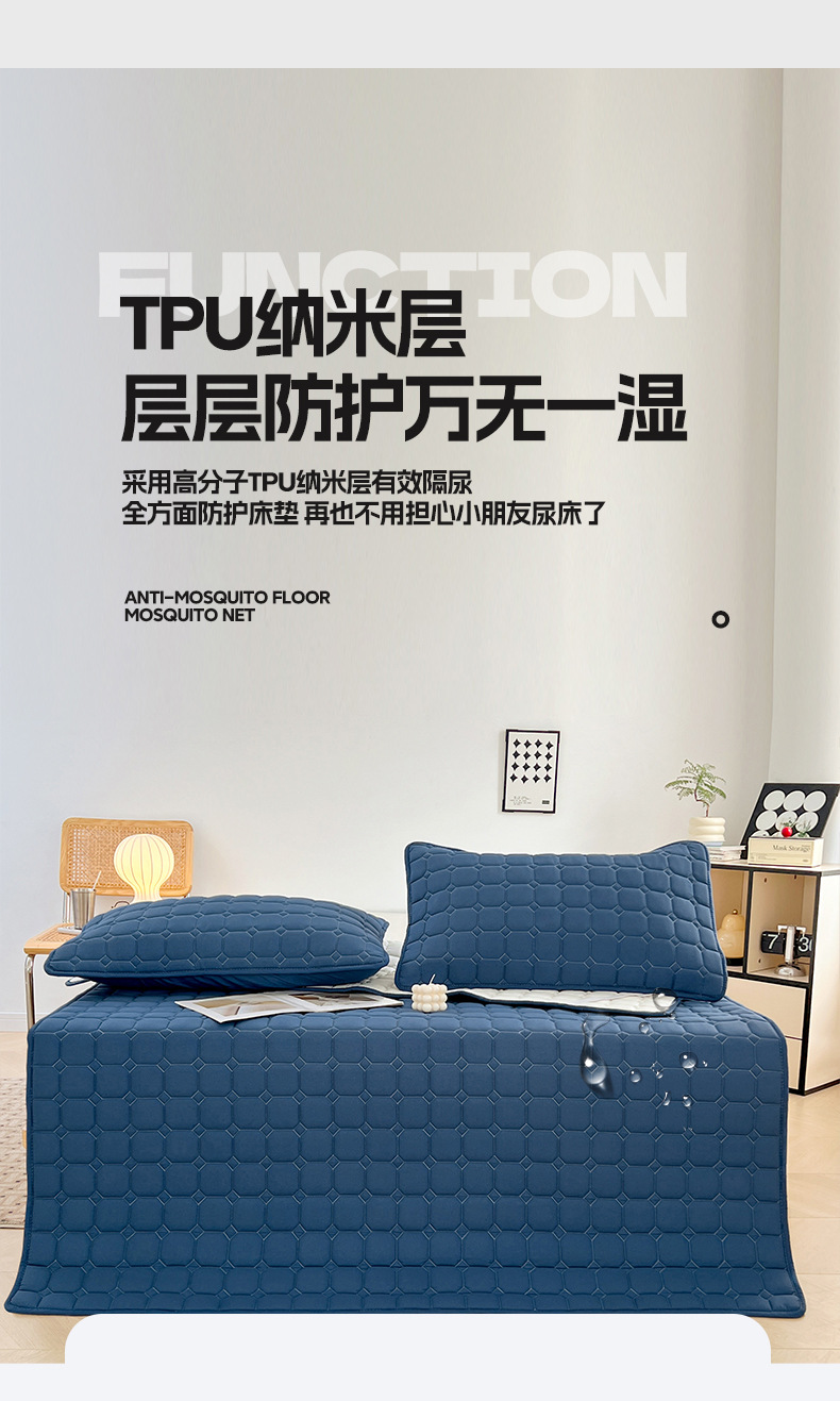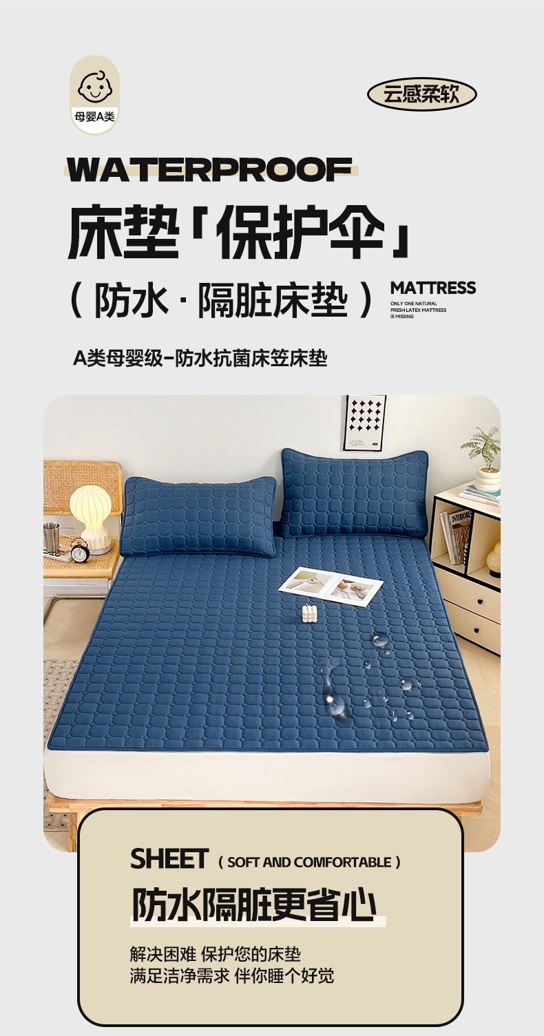워시드 코튼 누빔 매트리스 방수 방뇨 패드 세탁 가능한 A급 산모 및 유아용 침대 시트 베개 커버 3종 세트 침대 시트 침대 커버스토어 가기