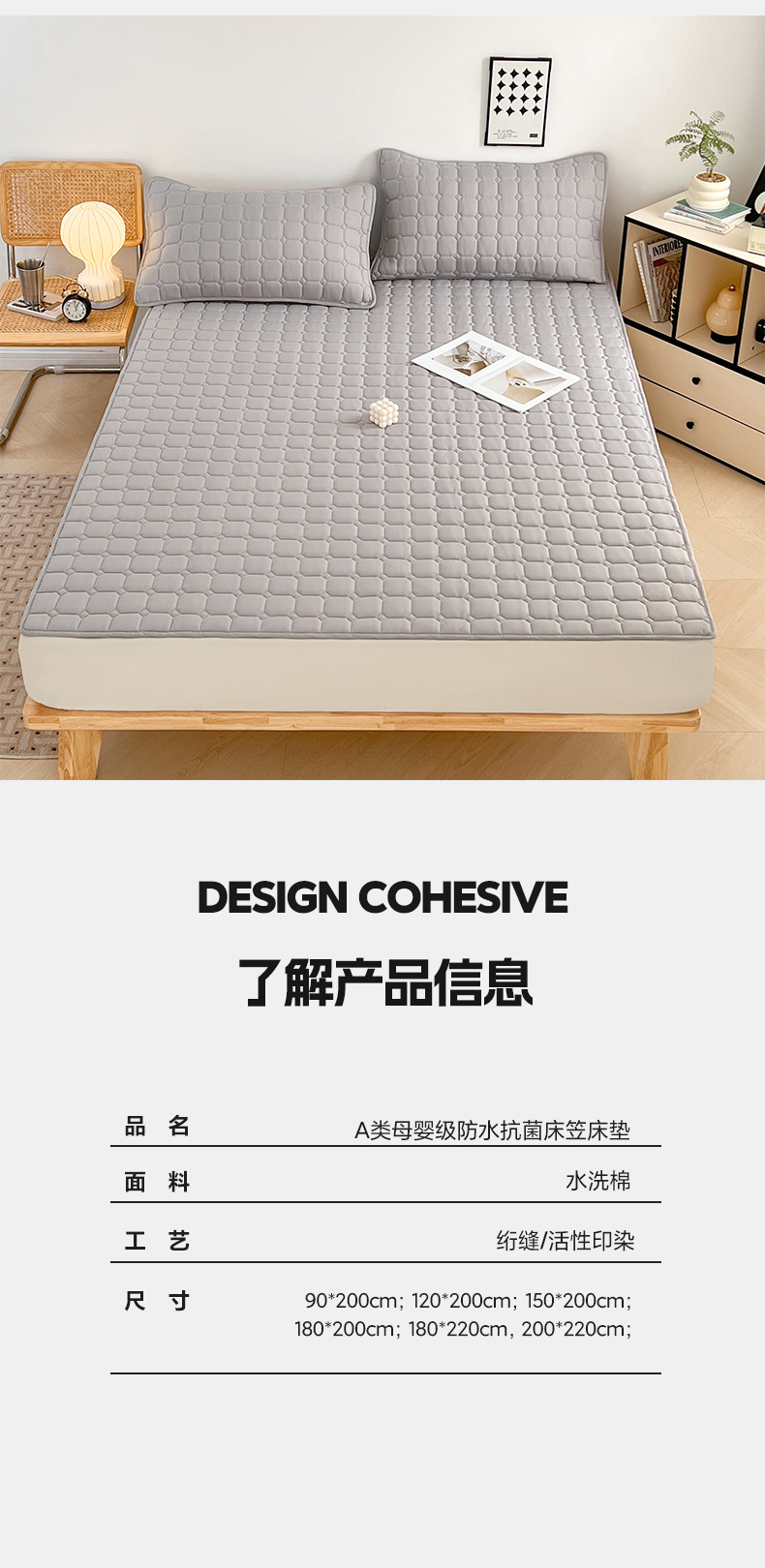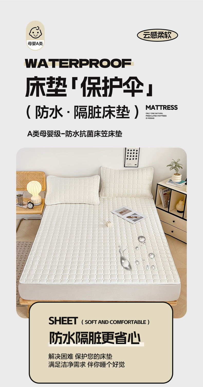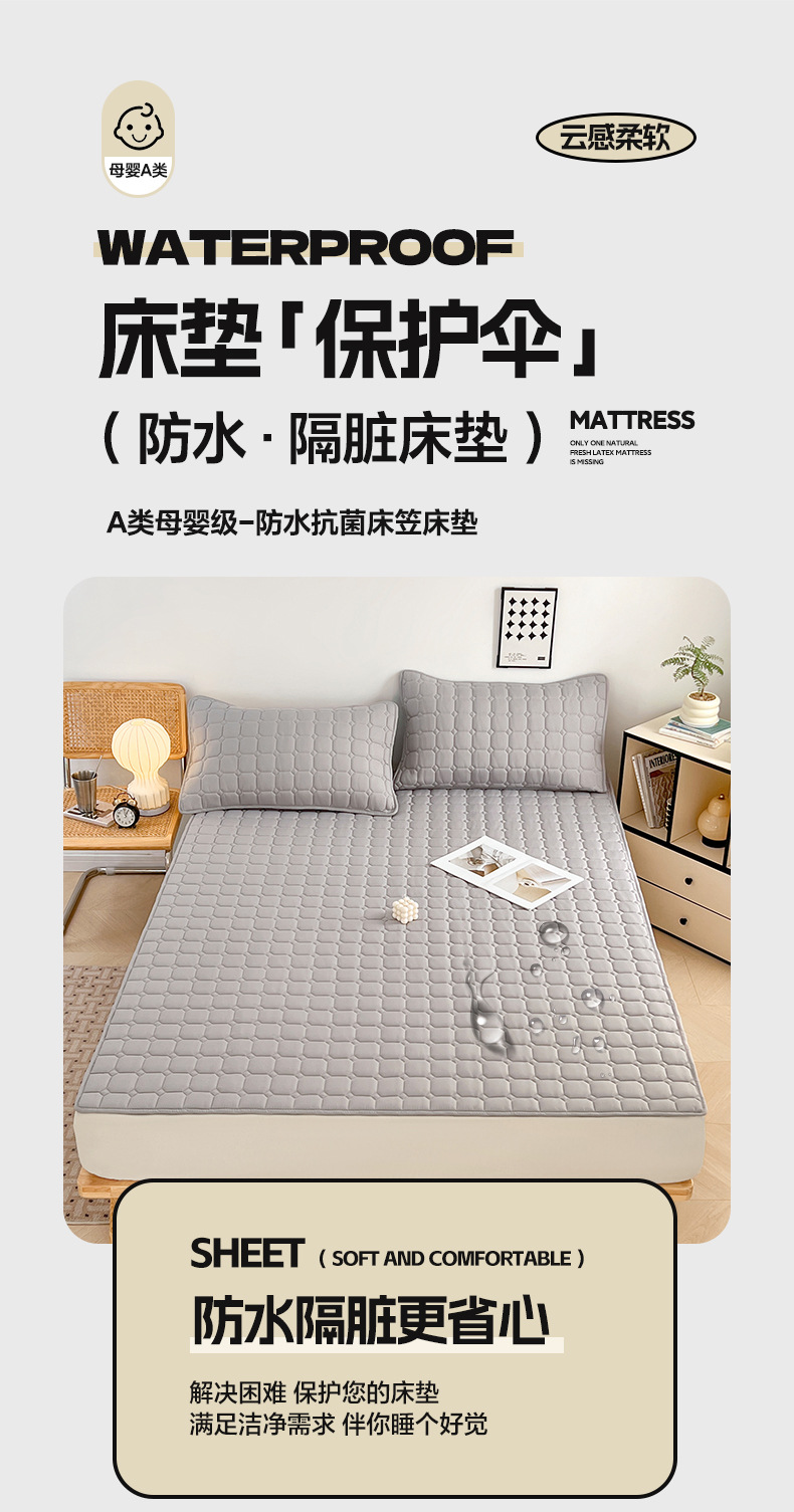 워시드 코튼 누빔 매트리스 방수 방뇨 패드 세탁 가능한 A급 산모 및 유아용 침대 시트 베개 커버 3종 세트 침대 시트 침대 커버스토어 가기