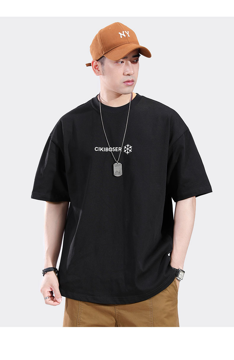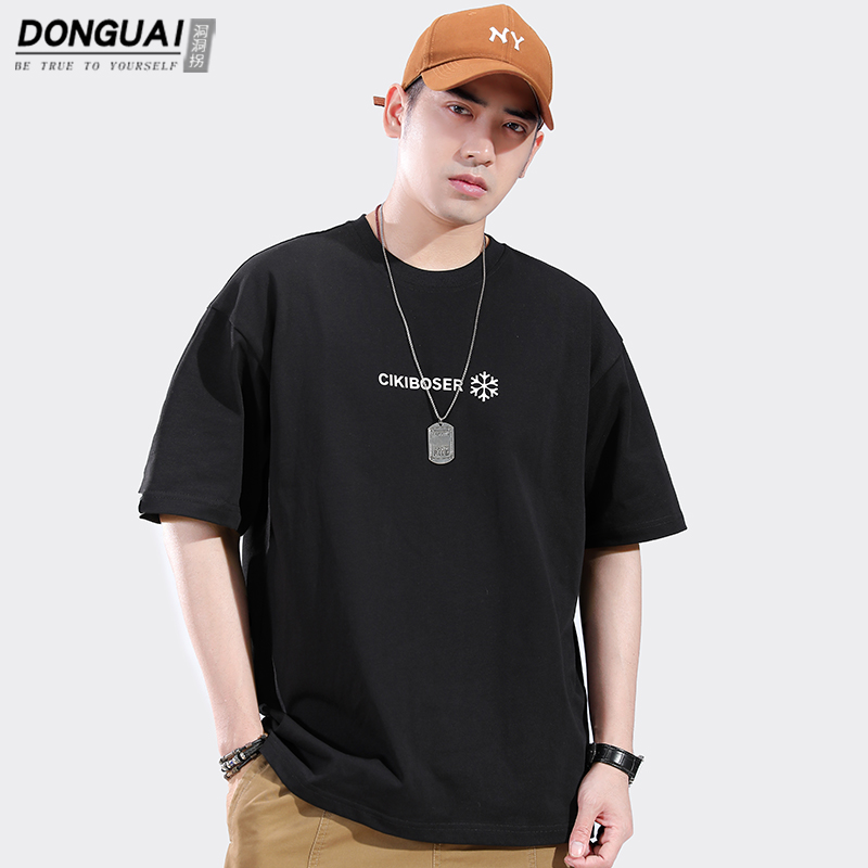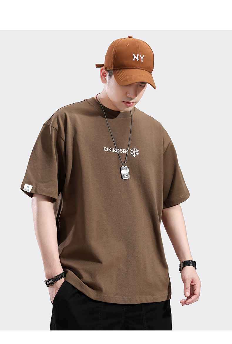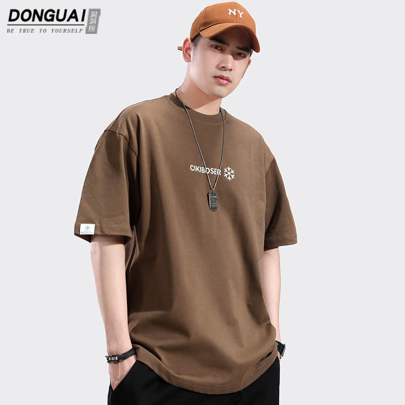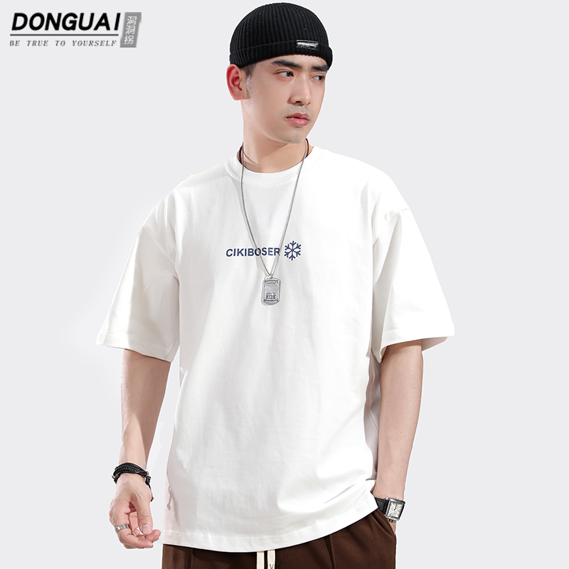 트렌디 한 브랜드 반팔 티셔츠 남자 2024 년 여름 새 남자 옷 느슨한 면 반팔베이스 셔츠 티셔츠스토어 가기