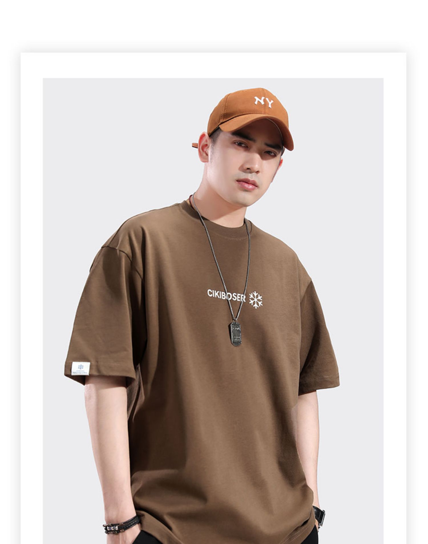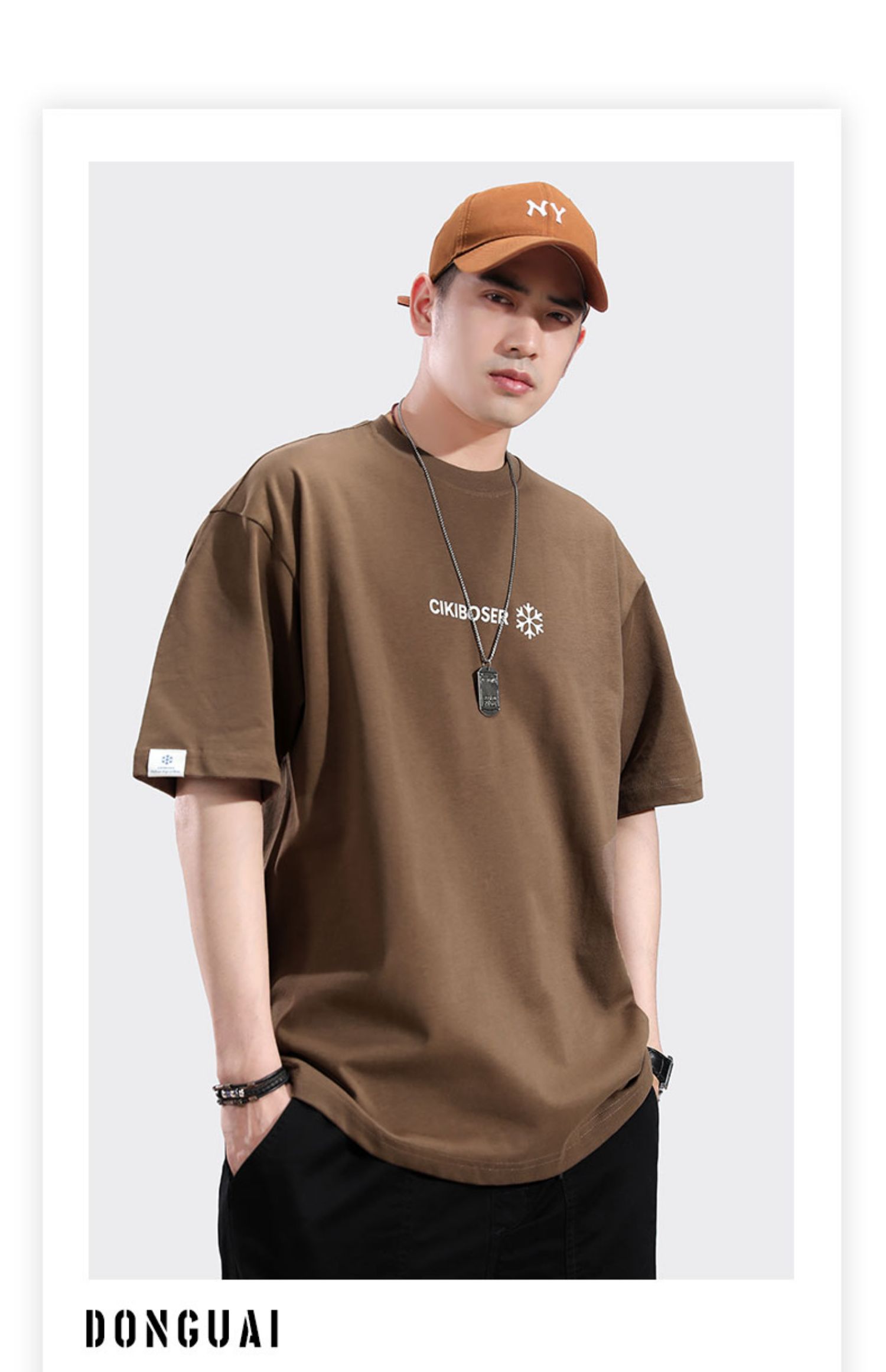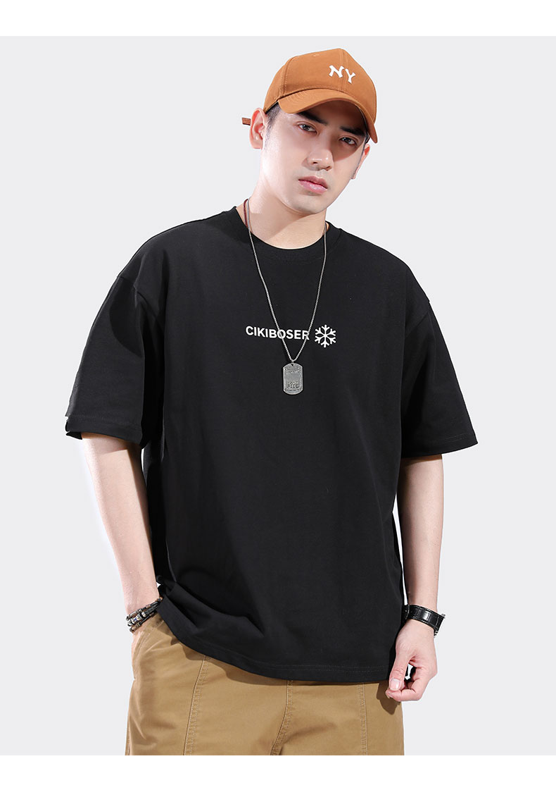 트렌디 한 브랜드 반팔 티셔츠 남자 2024 년 여름 새 남자 옷 느슨한 면 반팔베이스 셔츠 티셔츠스토어 가기