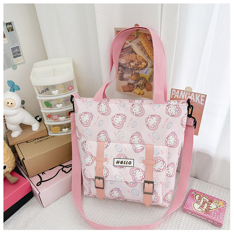 전술 가방 2024 새로운 어깨 가방 한국 스타일 유행 달콤한 인쇄 핸드백 크로스 바디 가방 대용량 여성용 가방