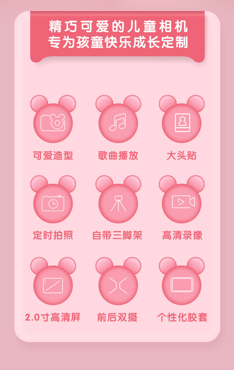 국경 미니 작은 카메라 어린이 HD 듀얼 카메라 카메라 귀여운 만화 보호 케이스 홀더 핸드 헬드 카메라