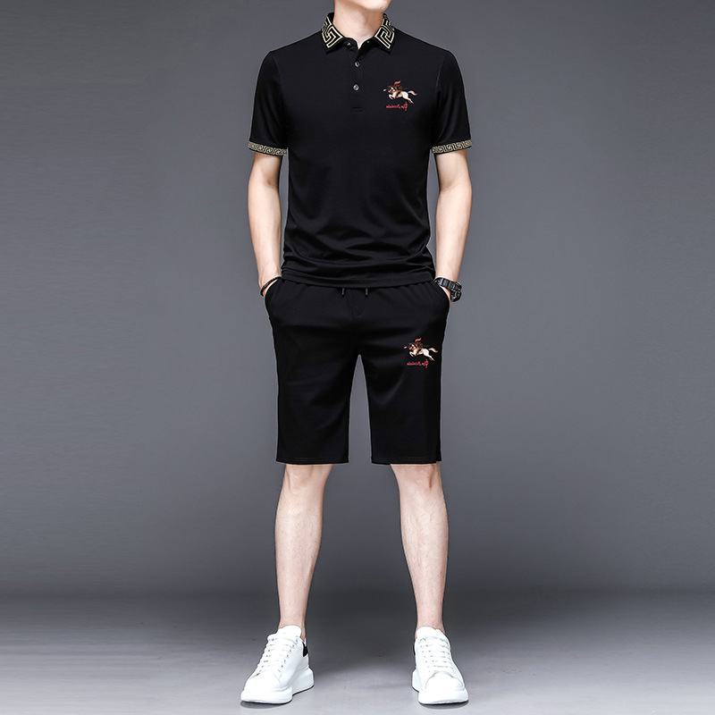 Combed Cotton 봄과 여름 캐주얼 반팔 반바지 세트 남성 젊고 중년 대형 남성 자켓 루즈 투피스 세트스토어 가기