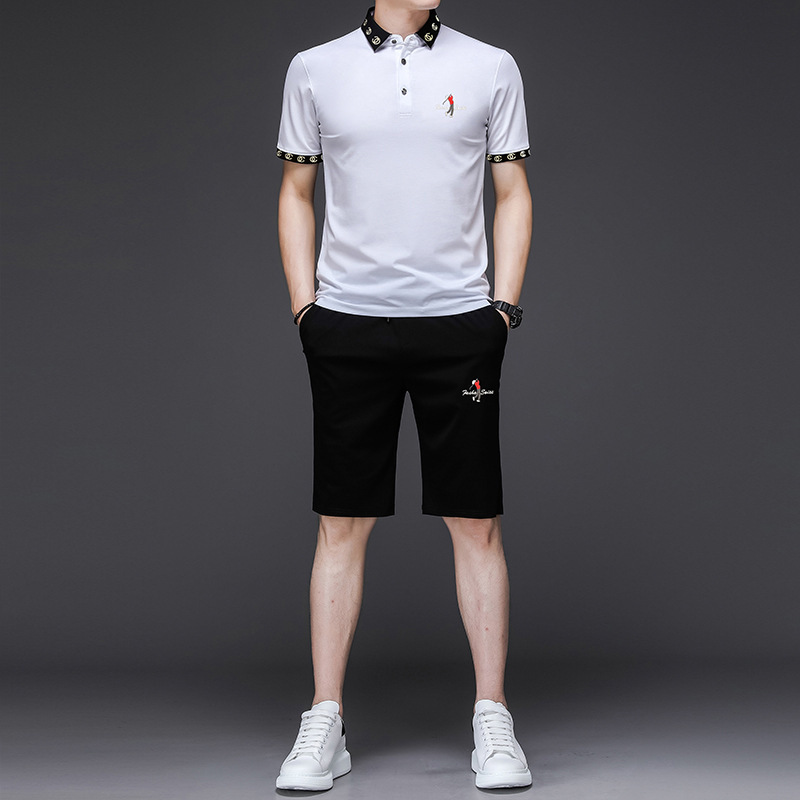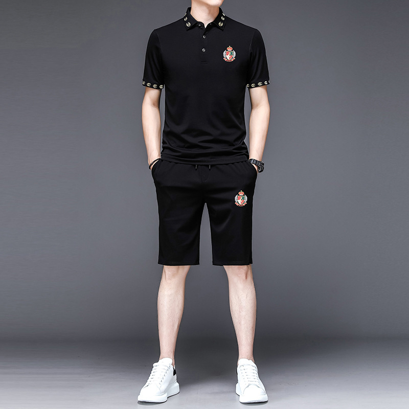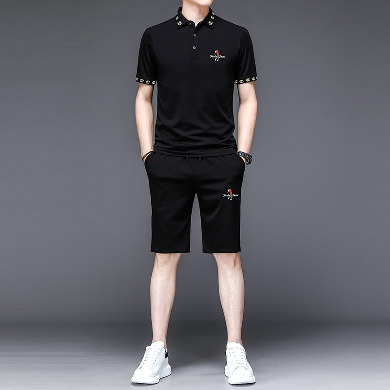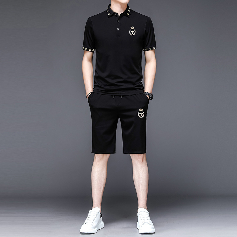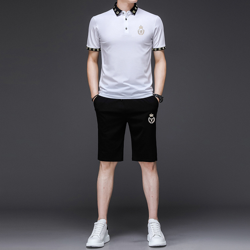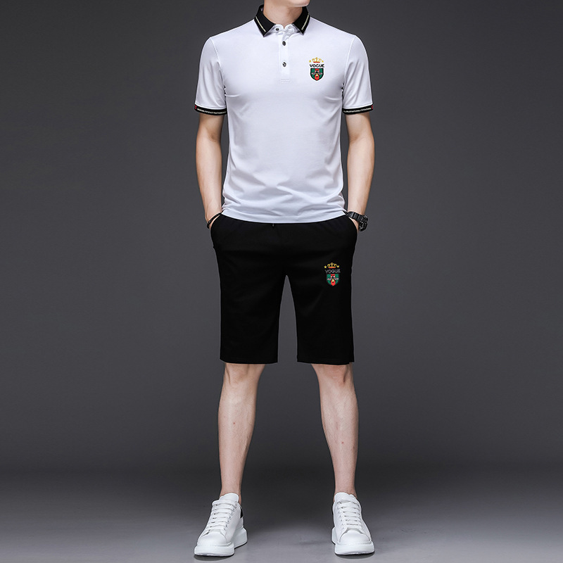 Combed Cotton 봄과 여름 캐주얼 반팔 반바지 세트 남성 젊고 중년 대형 남성 자켓 루즈 투피스 세트