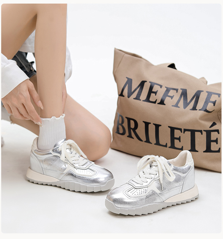 228 작은 키를 위한 키높이 운동화 여성용 2024 신상 통기성 발레 가죽 아가니 신발 두꺼운 밑창 운동화 32