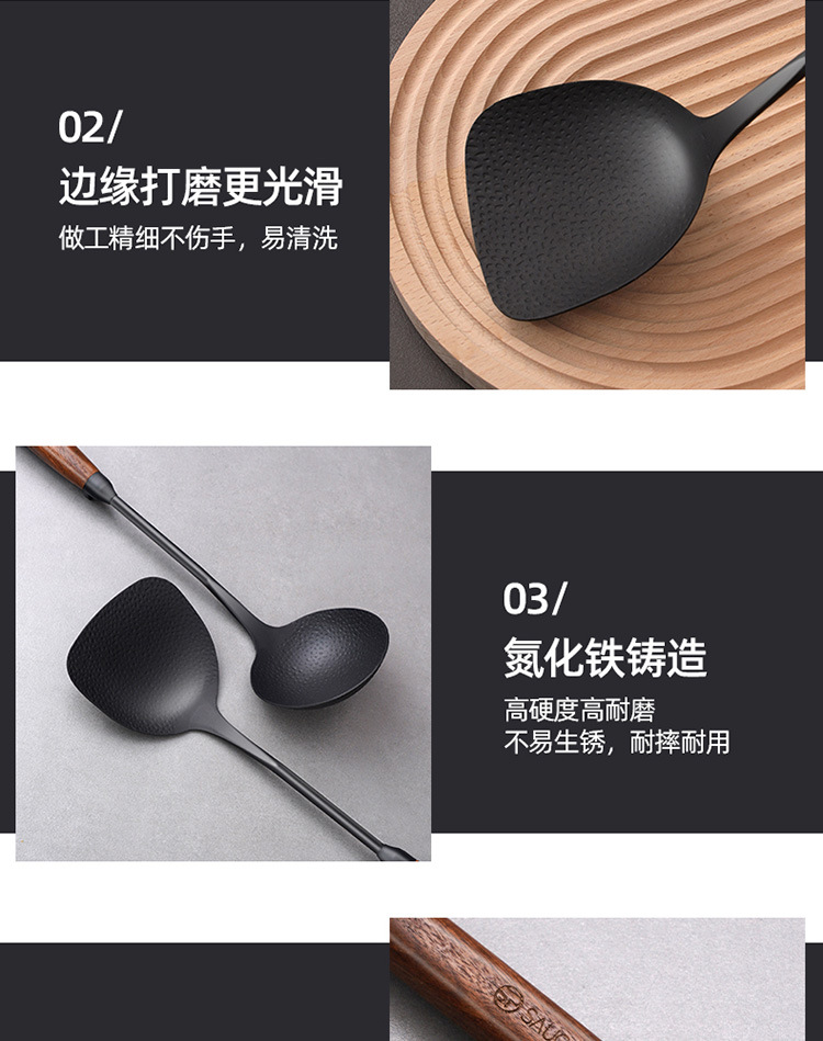 주철 주걱 가정용 나무 손잡이 주걱 비 스틱 조리기구 수프 스푼 볶음 주걱 볶음