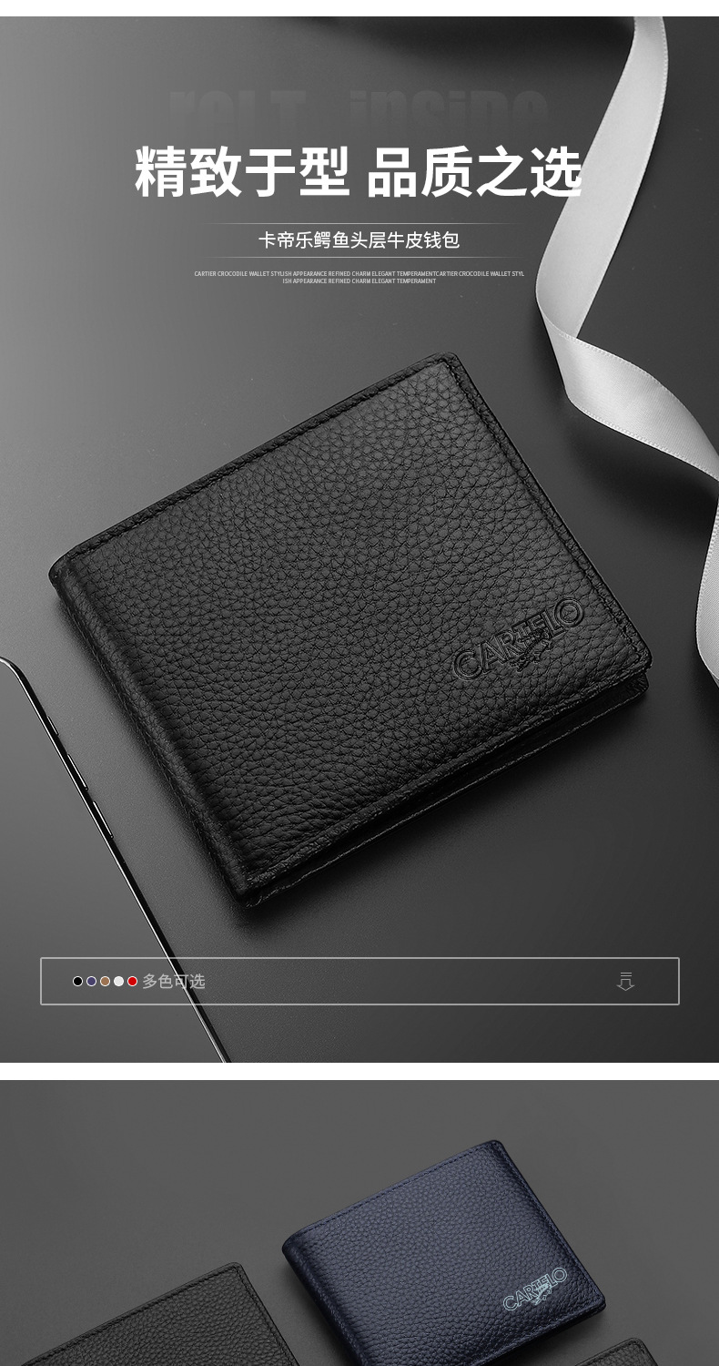 까르띠에 악어 지갑 남성 정품 가죽 짧은 지갑 2024 새 카드 가방 탑 레이어 Cowhide 청소년 지갑