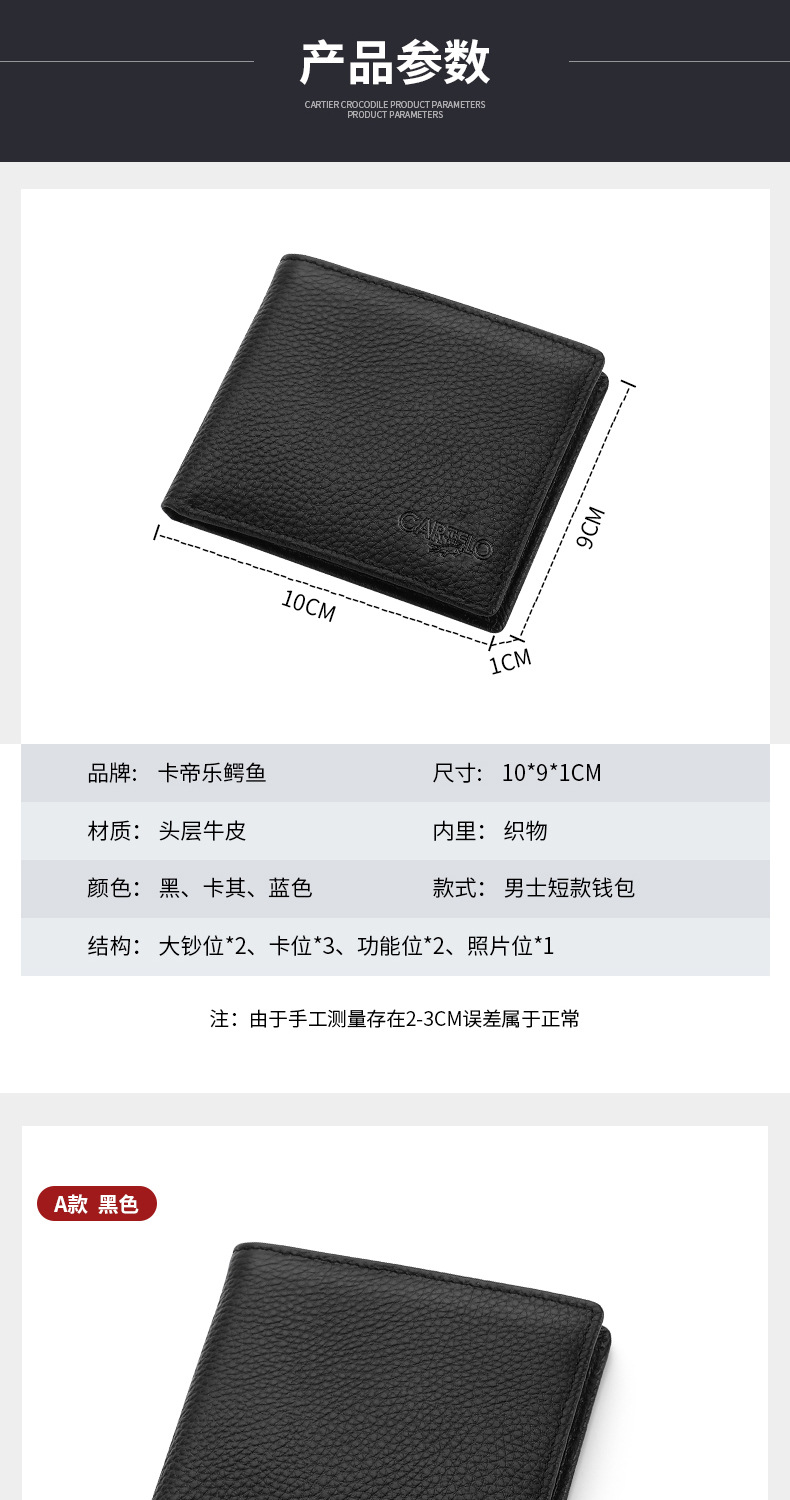 까르띠에 악어 지갑 남성 정품 가죽 짧은 지갑 2024 새 카드 가방 탑 레이어 Cowhide 청소년 지갑스토어 가기