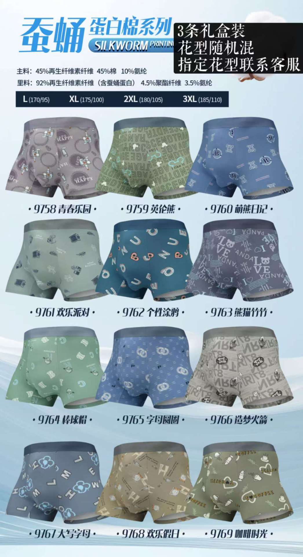 敏奴3条礼盒装内裤 7A抑菌蚕蛹蛋白纤维 温馨提醒:花型随机发货,指定花型需要联系客服备注!