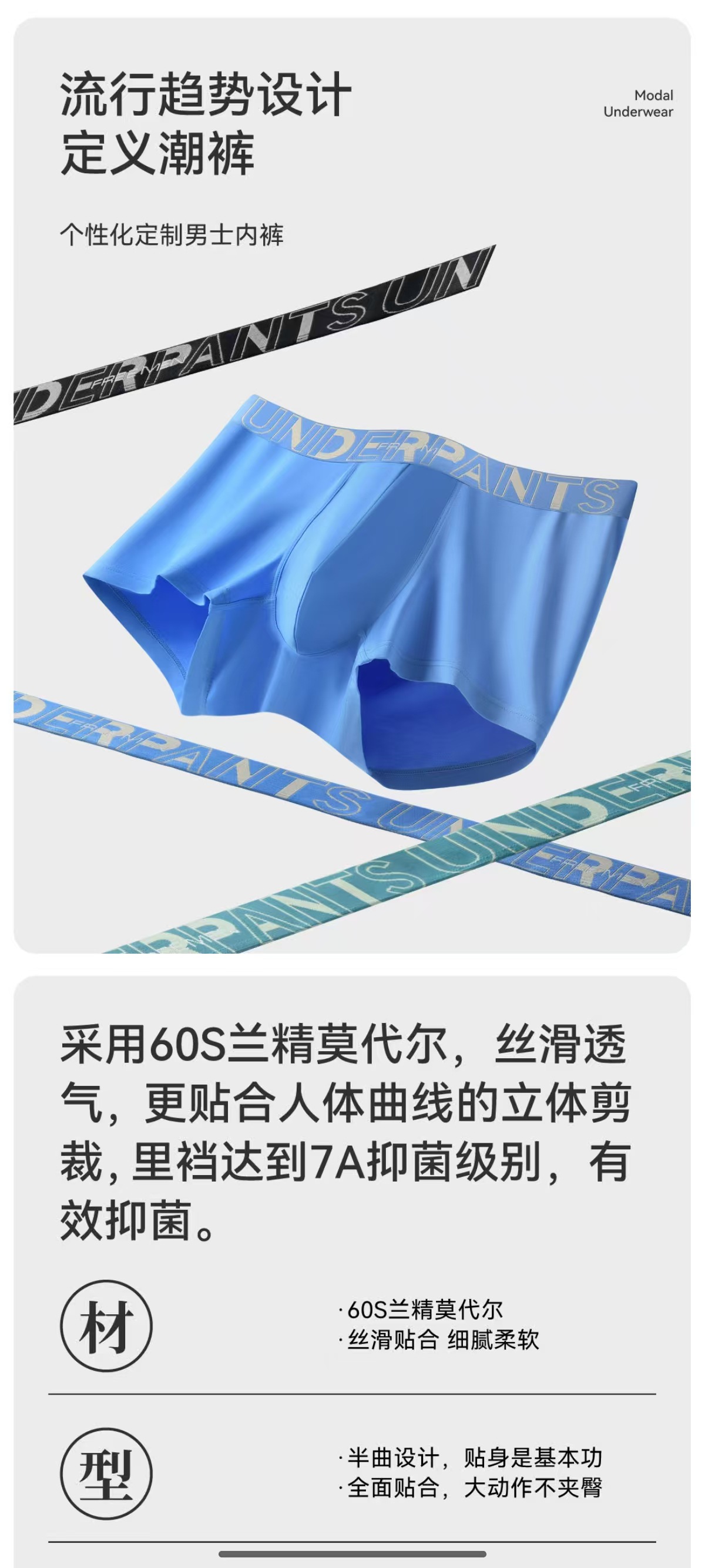 7A 식물 항균 속옷 Minnu 3 선물 상자 Traceless Anti-Mite 통기성 편안한 Ry Cotton 항균 반바지 선물스토어 가기