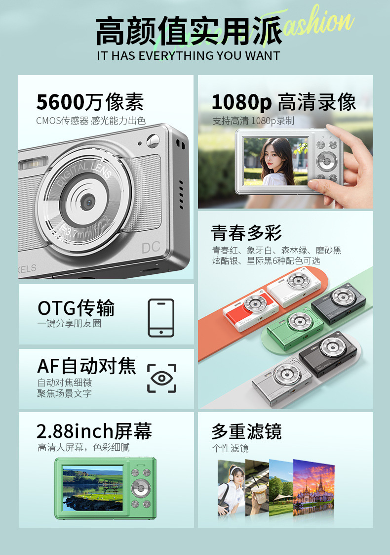학생 ccd 카드 디지털 카메라 AF 자동 초점 2.8 인치 초 고화질 디스플레이 56 백만 픽셀