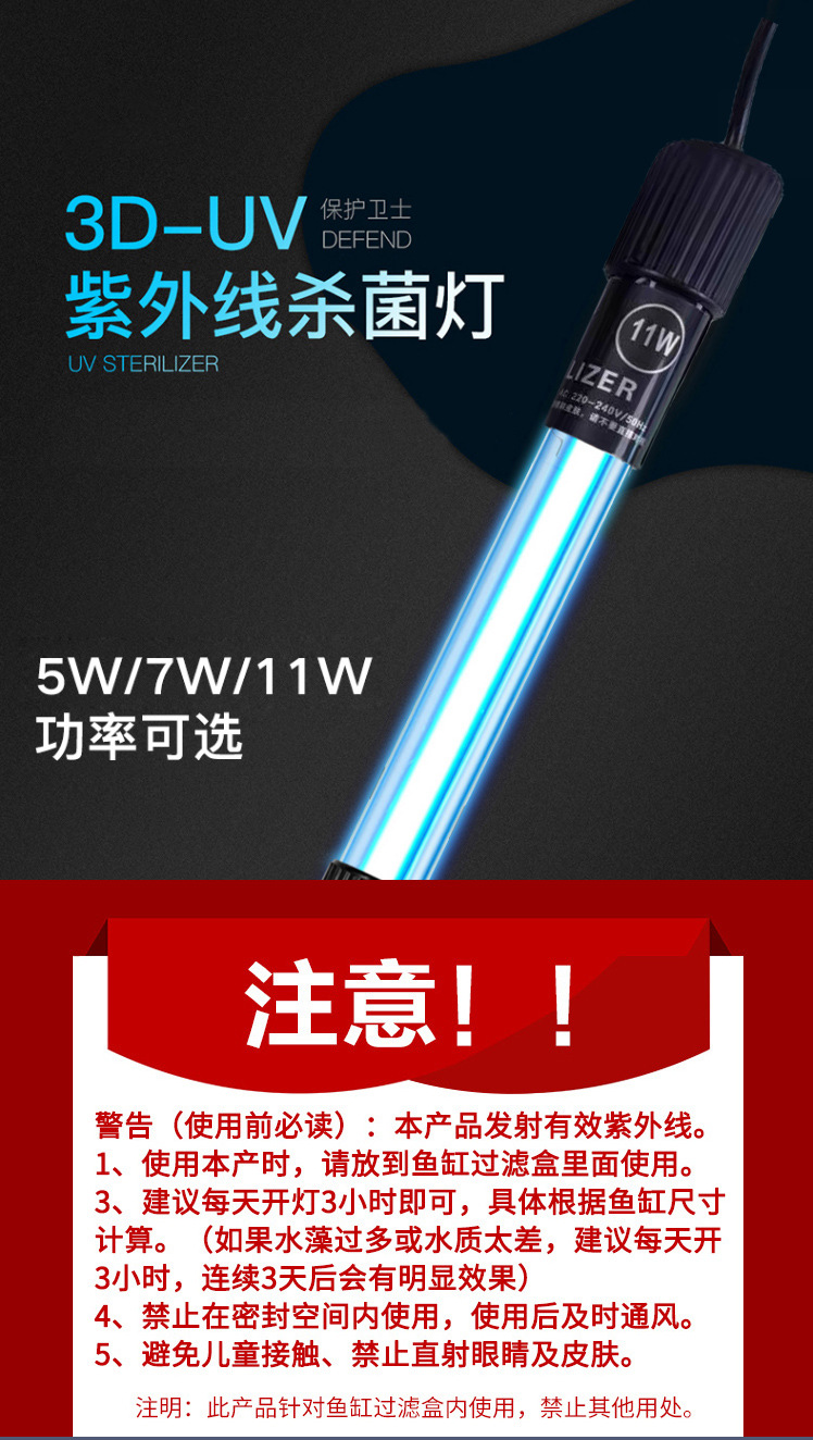 물고기 탱크 살균 램프 UV 다이빙 살균 램프 물고기 탱크 소독 및 살균 조류 제거 어항 UV 살균 방수 램프스토어 가기