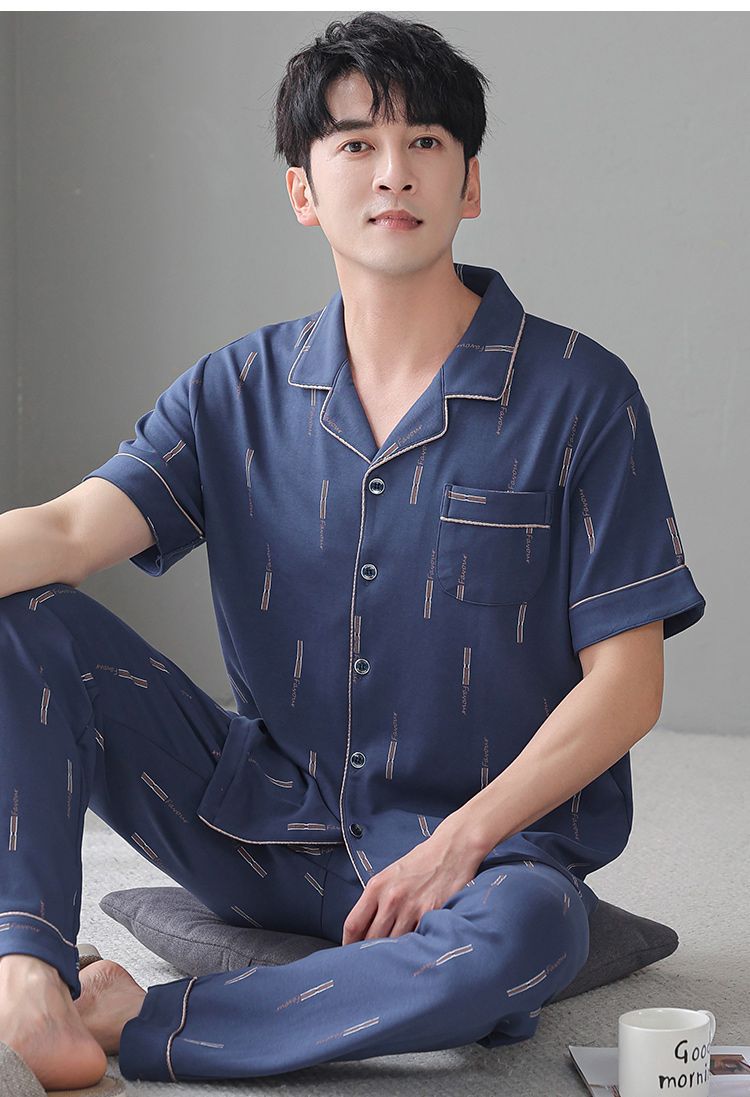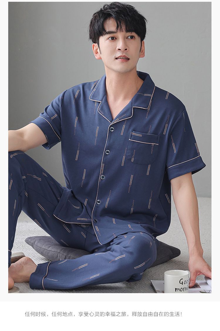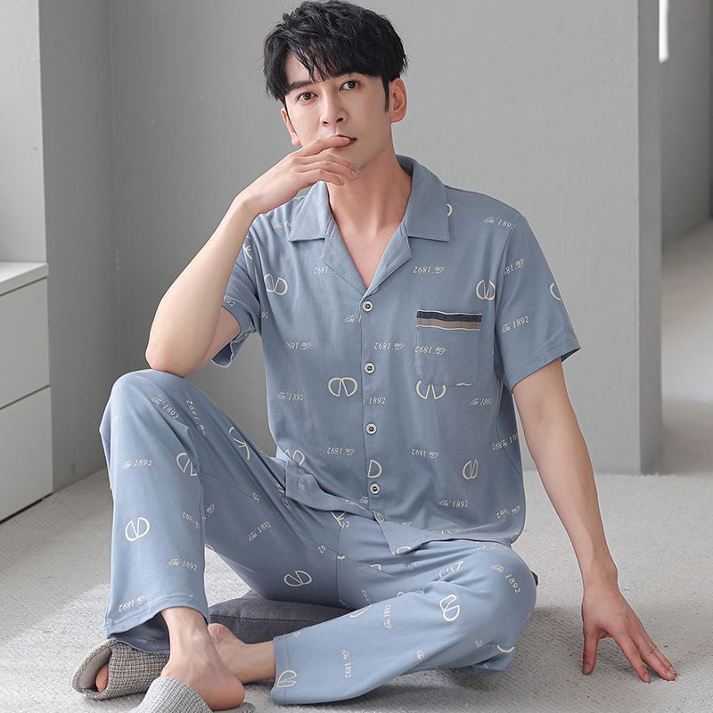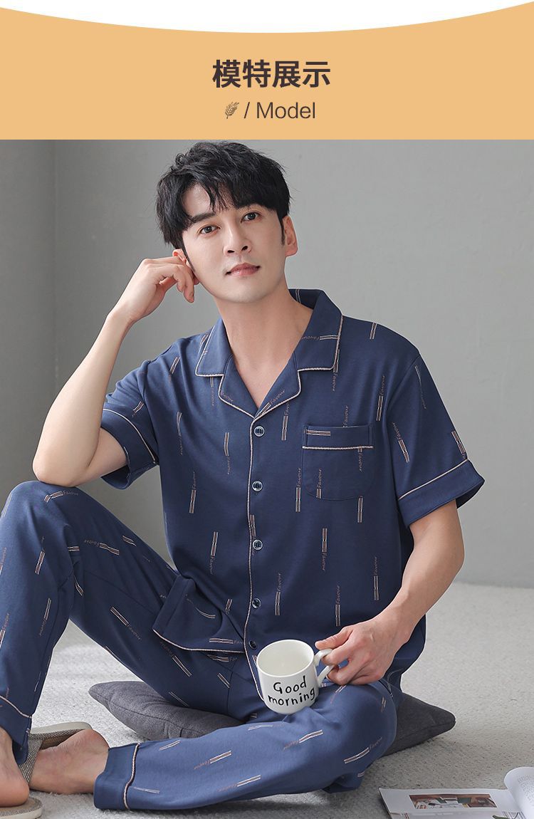 면 2024 새로운 남성 잠옷 여름 반팔 바지 봄과 가을 얇은 외부 착용 홈 옷스토어 가기
