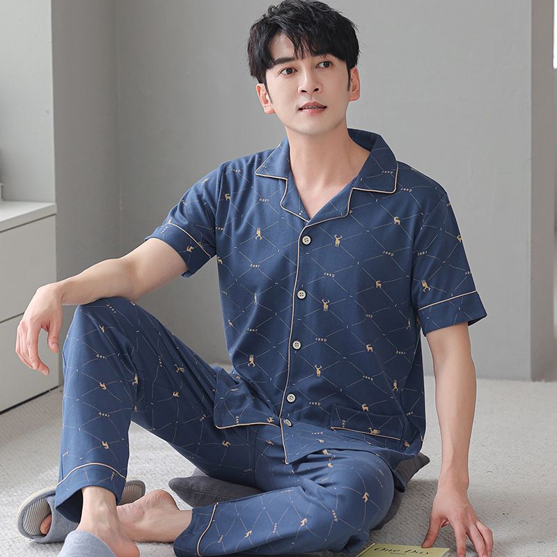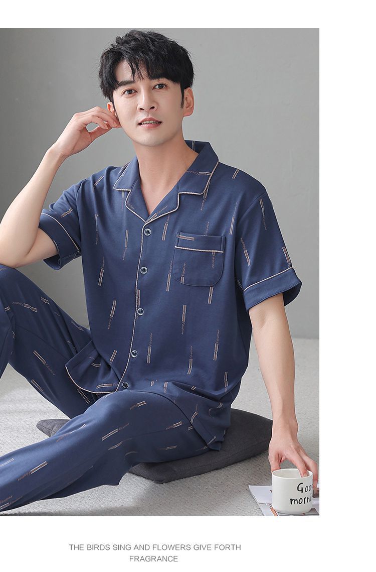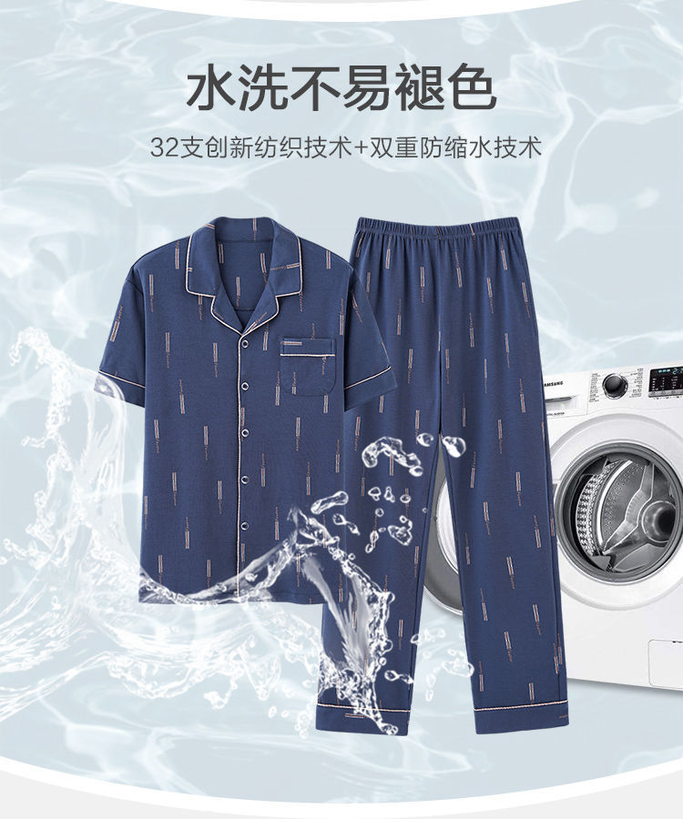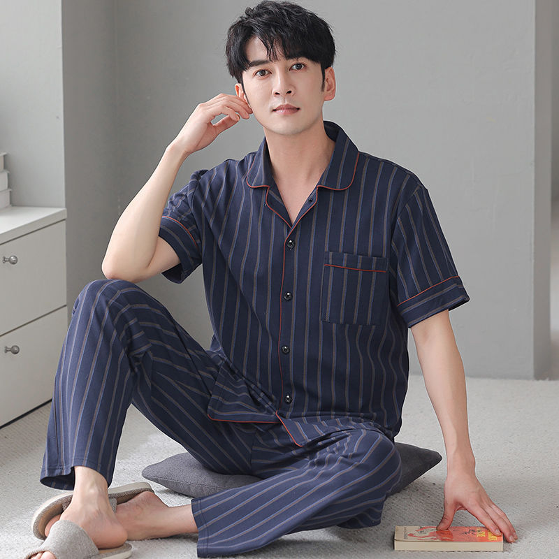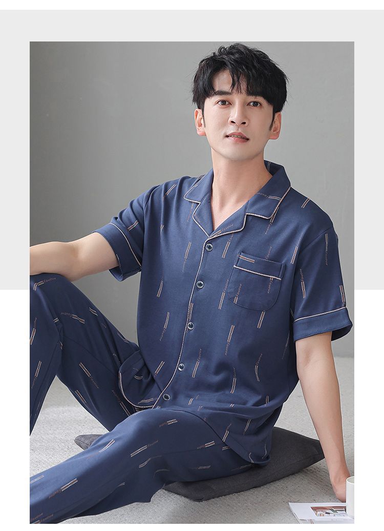 면 2024 새로운 남성 잠옷 여름 반팔 바지 봄과 가을 얇은 외부 착용 홈 옷스토어 가기