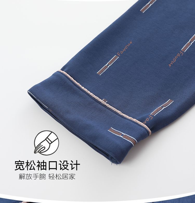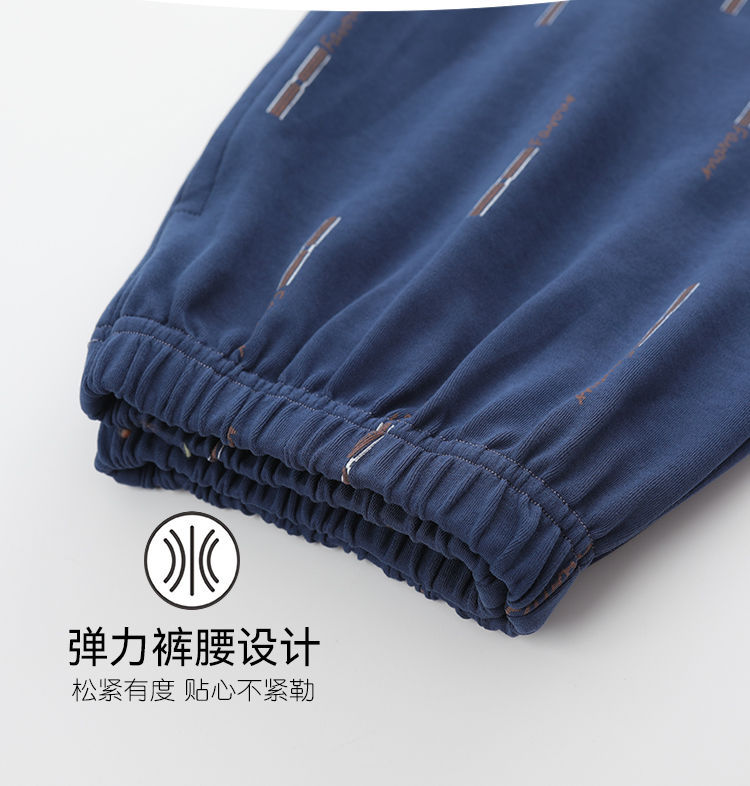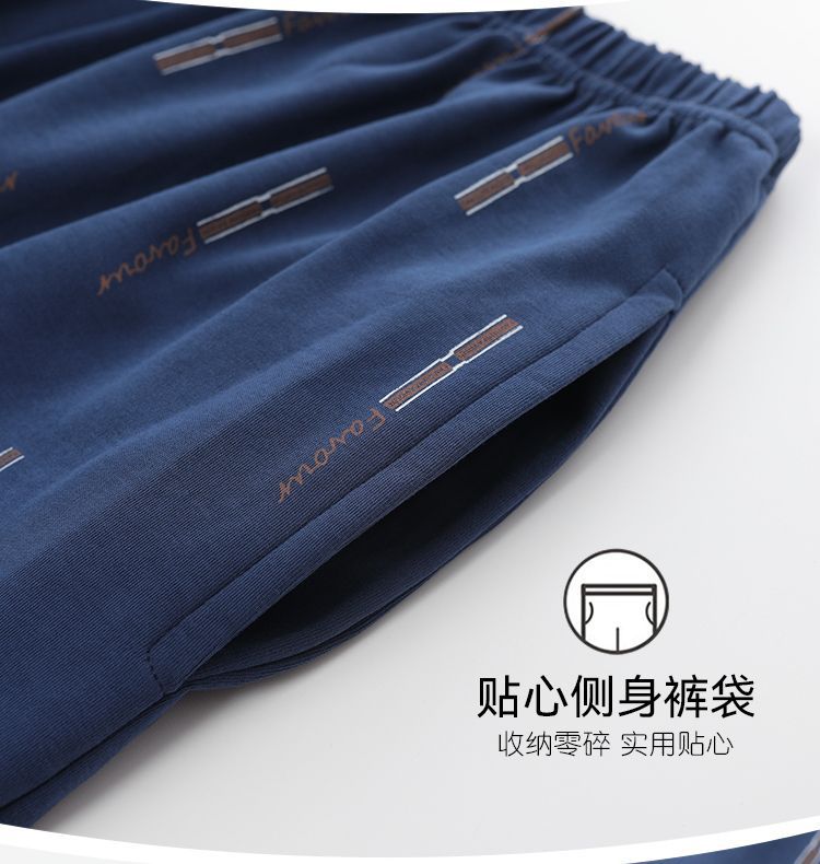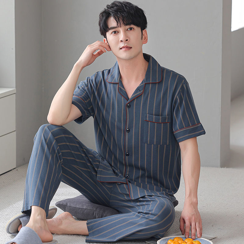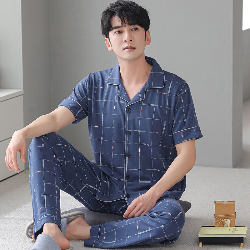 면 2024 새로운 남성 잠옷 여름 반팔 바지 봄과 가을 얇은 외부 착용 홈 옷