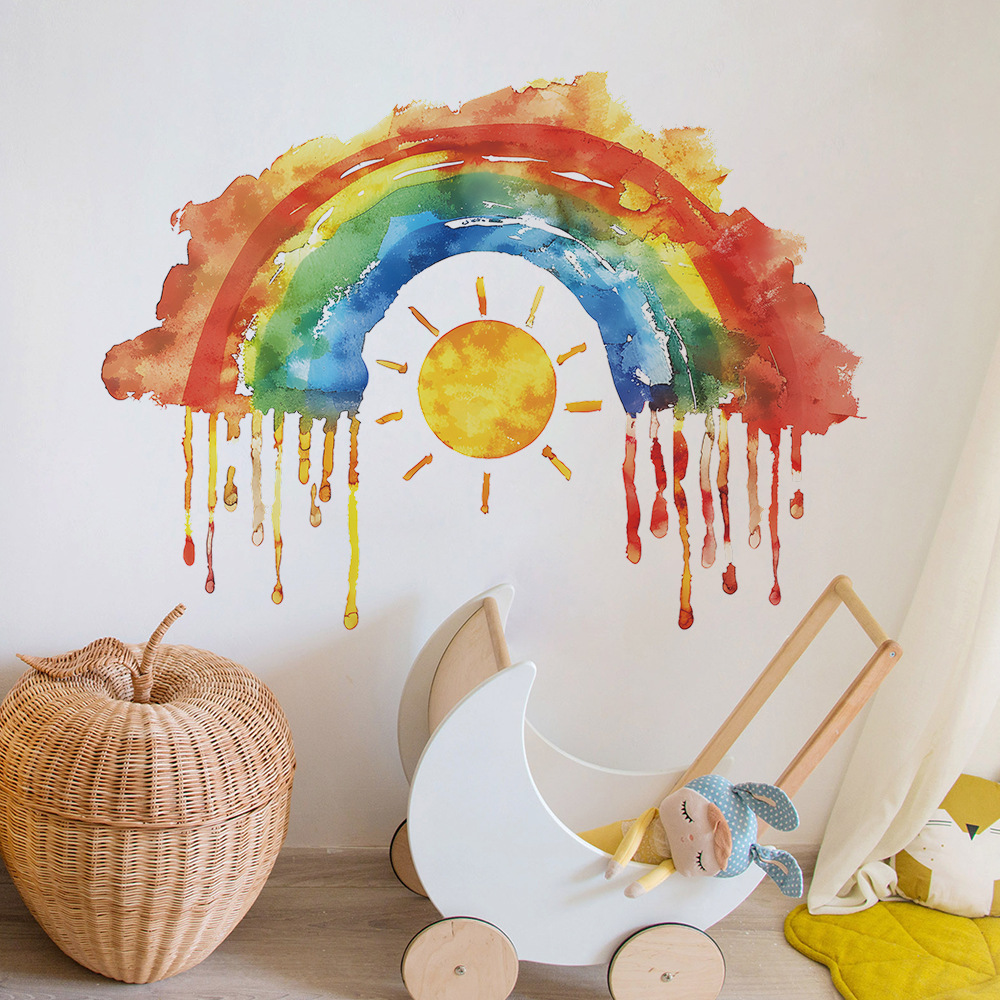 Fun-L031 만화 수채화 바람 무지개 태양 침실 거실 벽 미화 장식 벽 스티커 도매 자기 접착스토어 가기