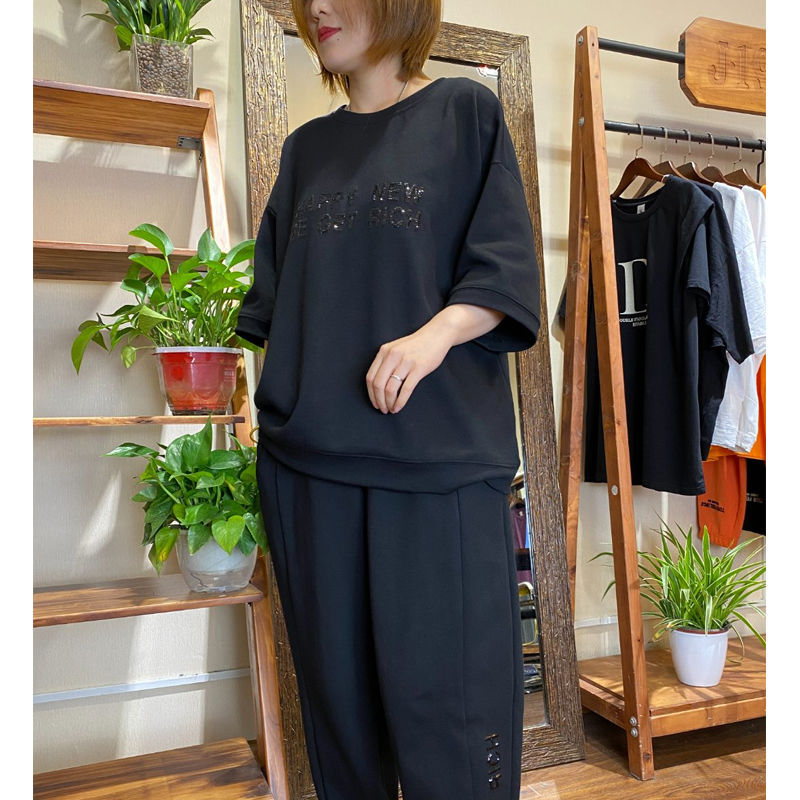 200kg 플러스 사이즈 국경 대외 무역 스포츠 세트 여름 한국 스타일 통통녀 패션 연령 감소 짧은 소매 바지 투피스 세트