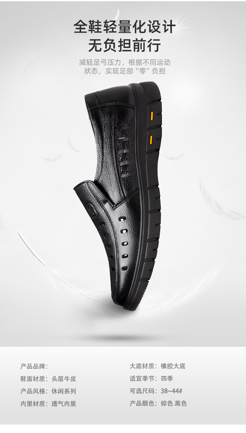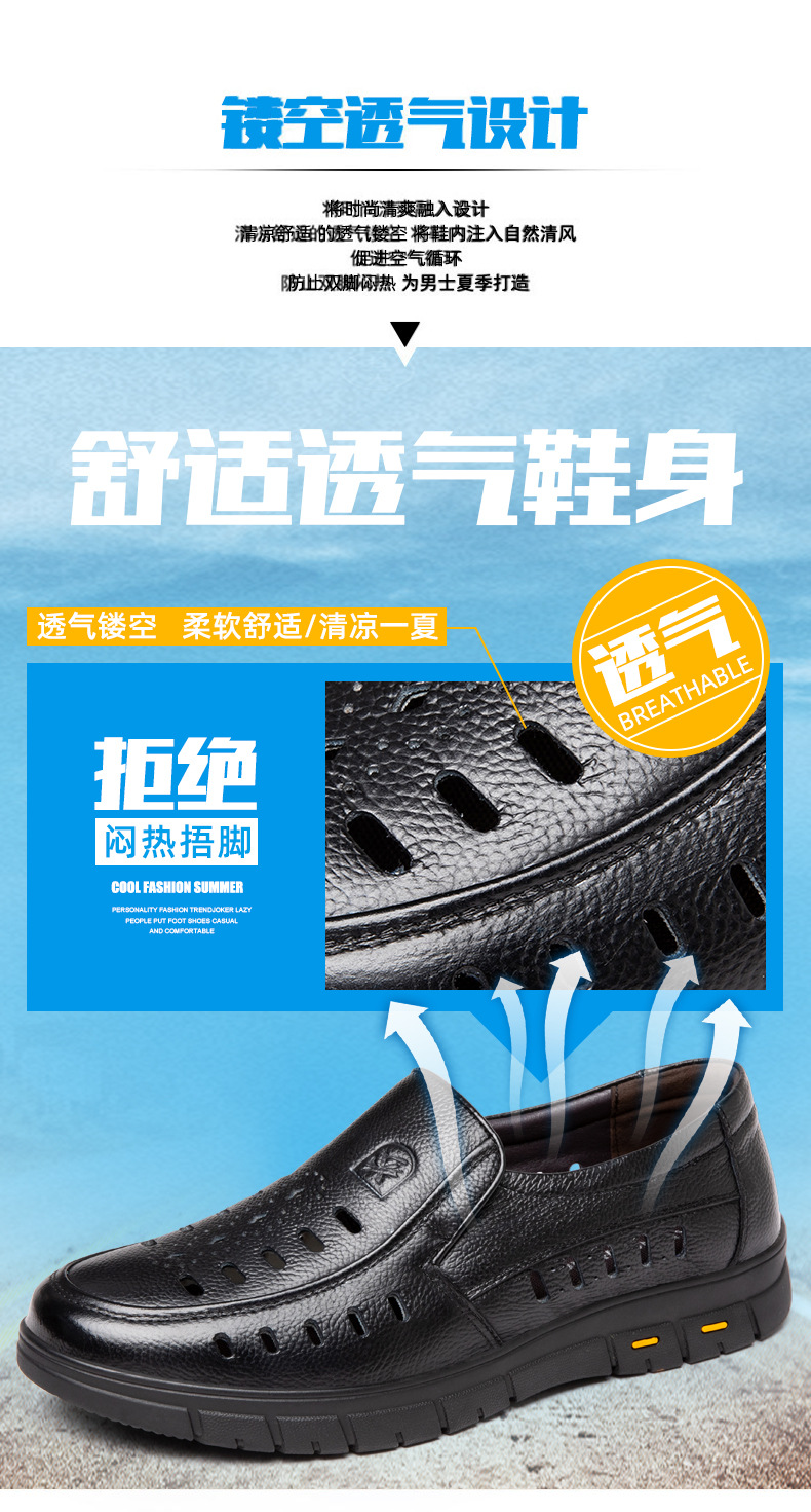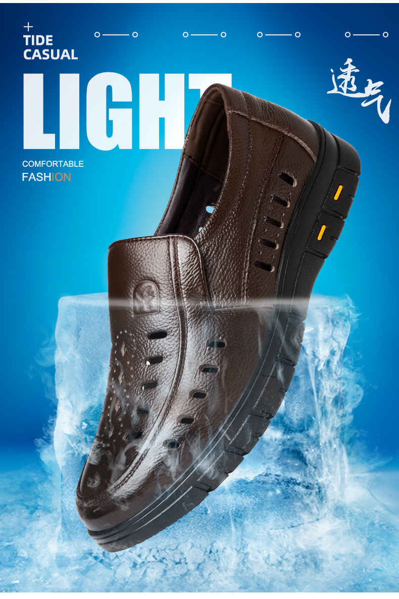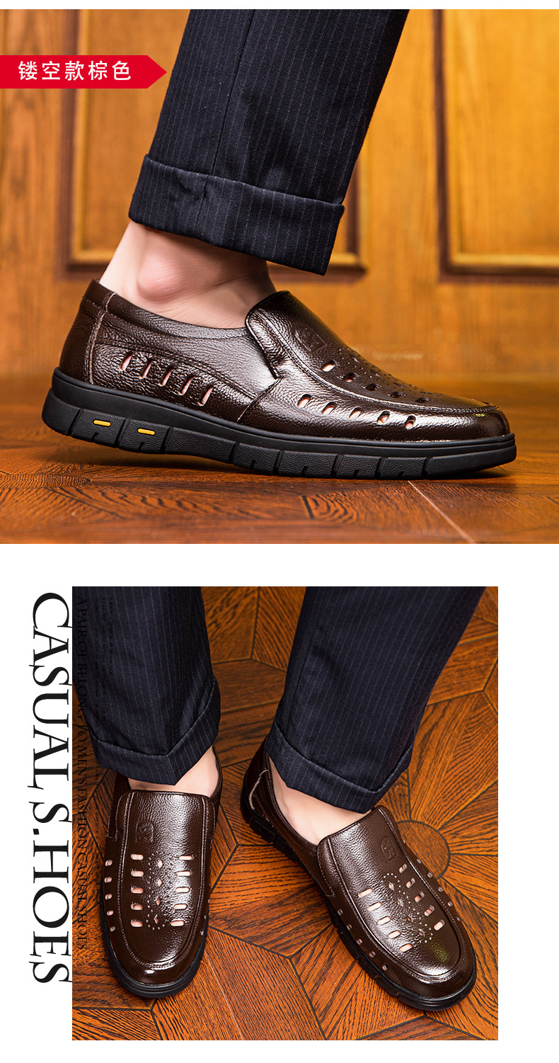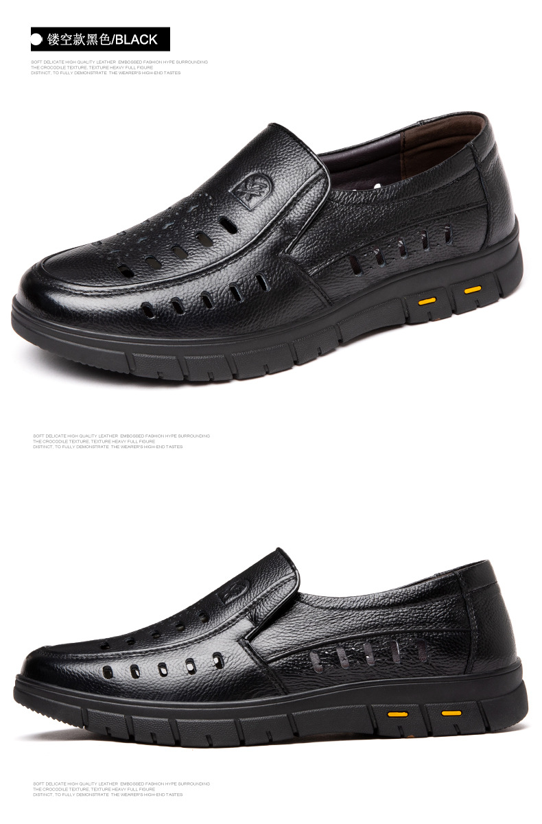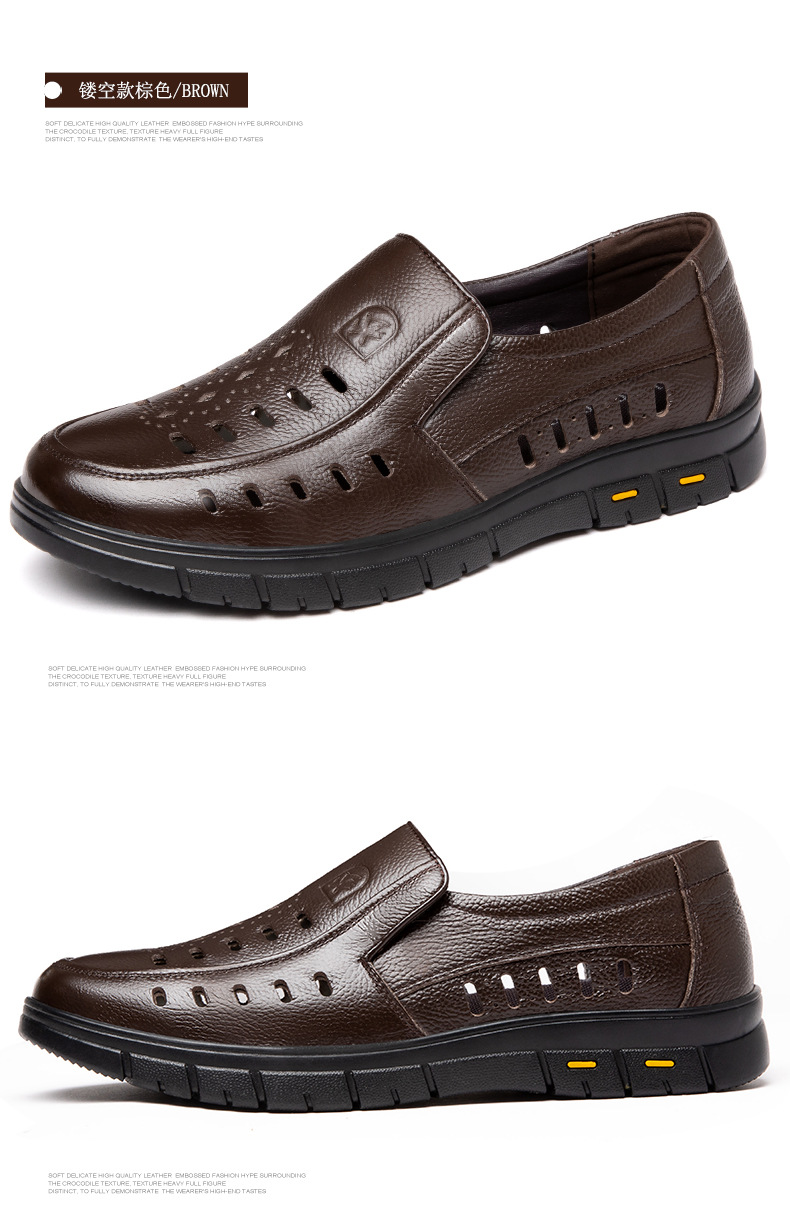 가죽 샌들의 첫 번째 레이어 남성의 새로운 여름 통기성 구멍 가죽 신발 중년 및 노인 캐주얼 부드러운 바닥 미끄럼 방지 아빠 신발스토어 가기