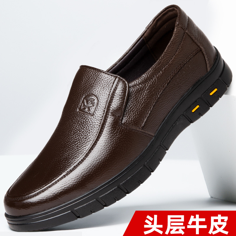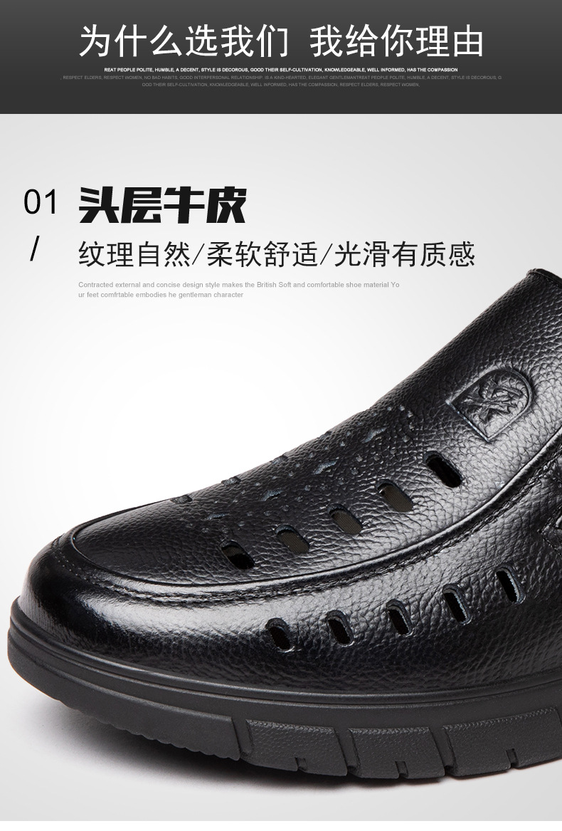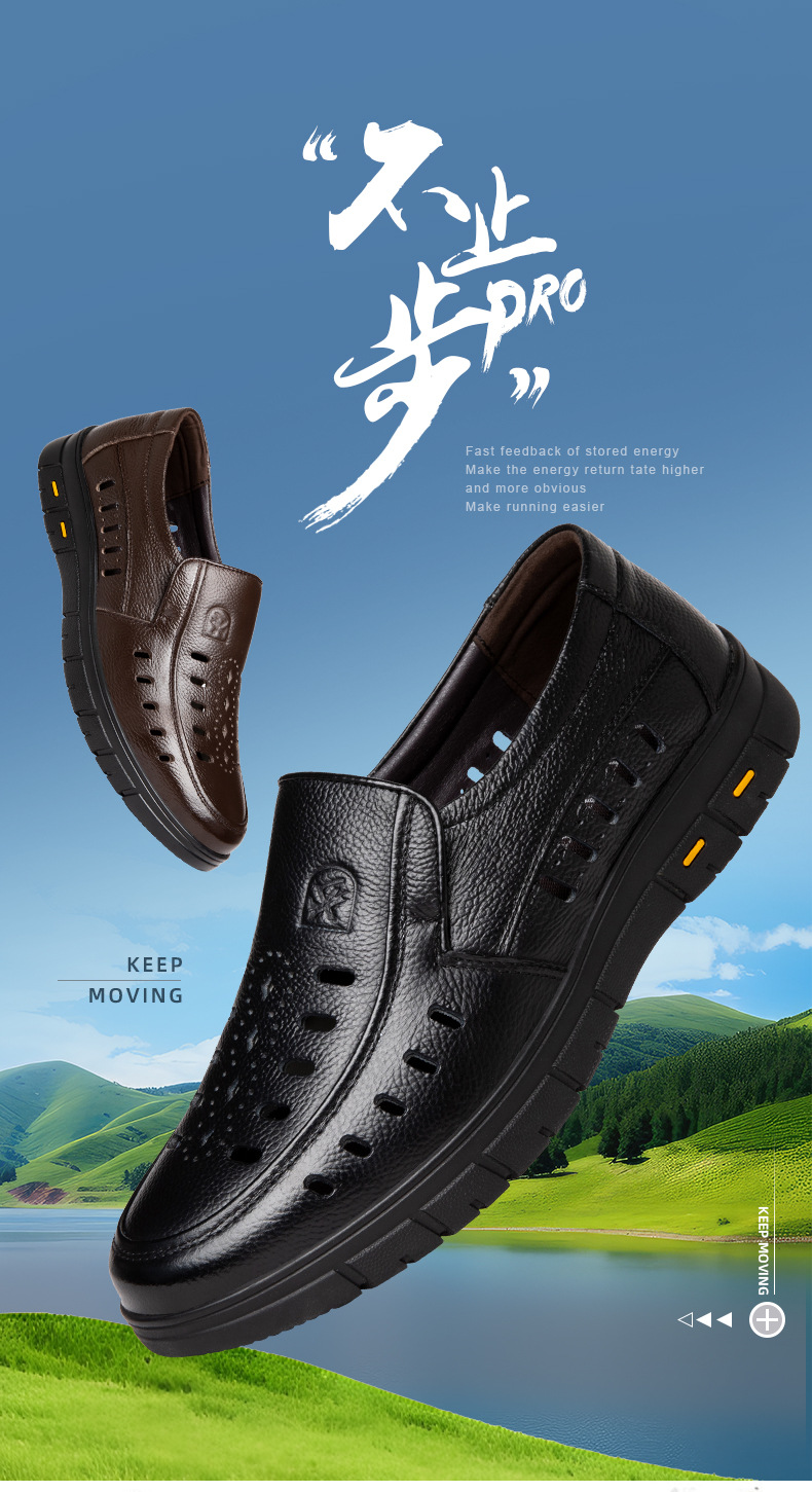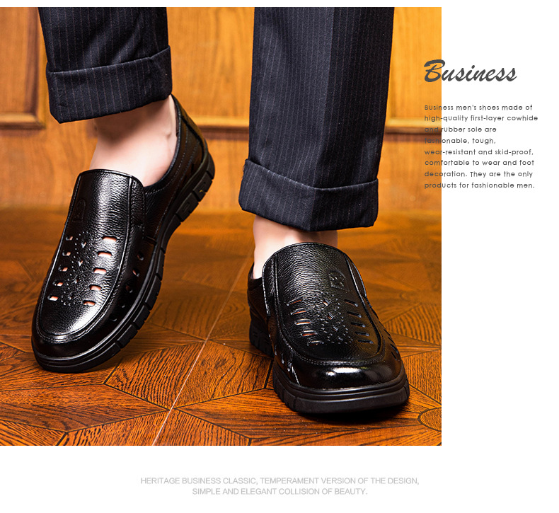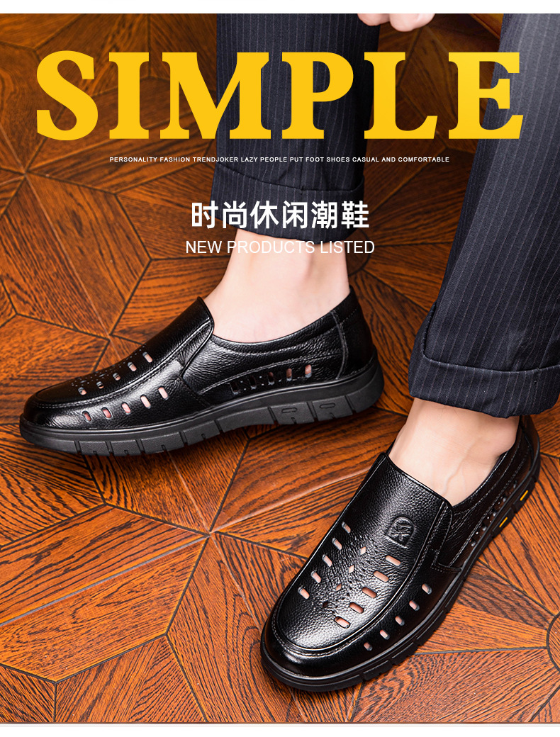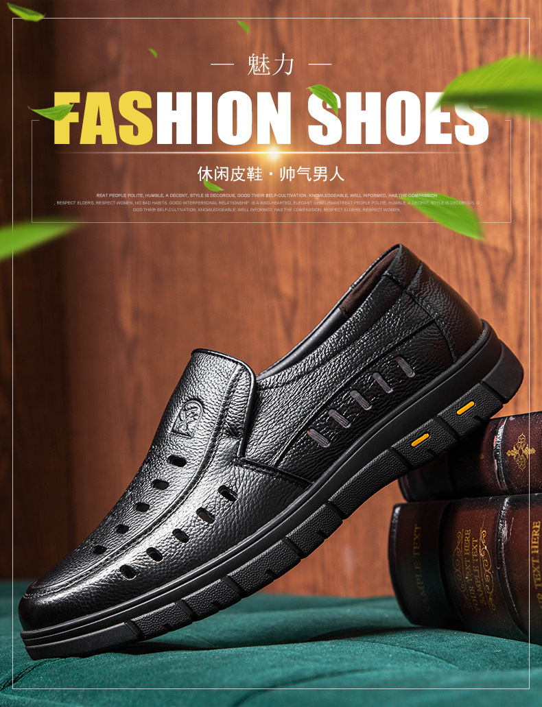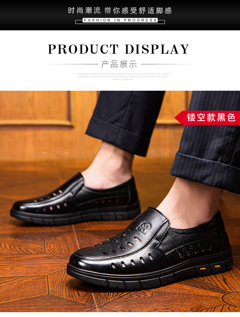 가죽 샌들의 첫 번째 레이어 남성의 새로운 여름 통기성 구멍 가죽 신발 중년 및 노인 캐주얼 부드러운 바닥 미끄럼 방지 아빠 신발스토어 가기